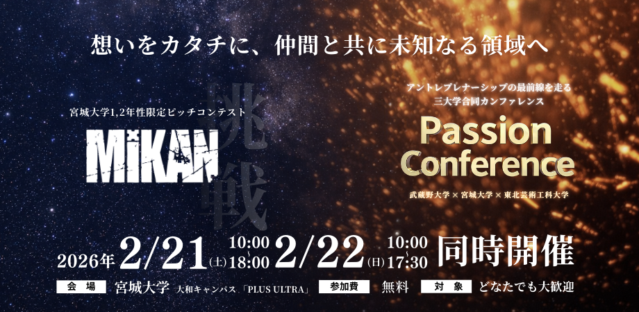 2/21-22 学生団体Brushが「MIKAN × Passion Conference 2026」を開催、参加者を募集しています(申込2/15まで)
