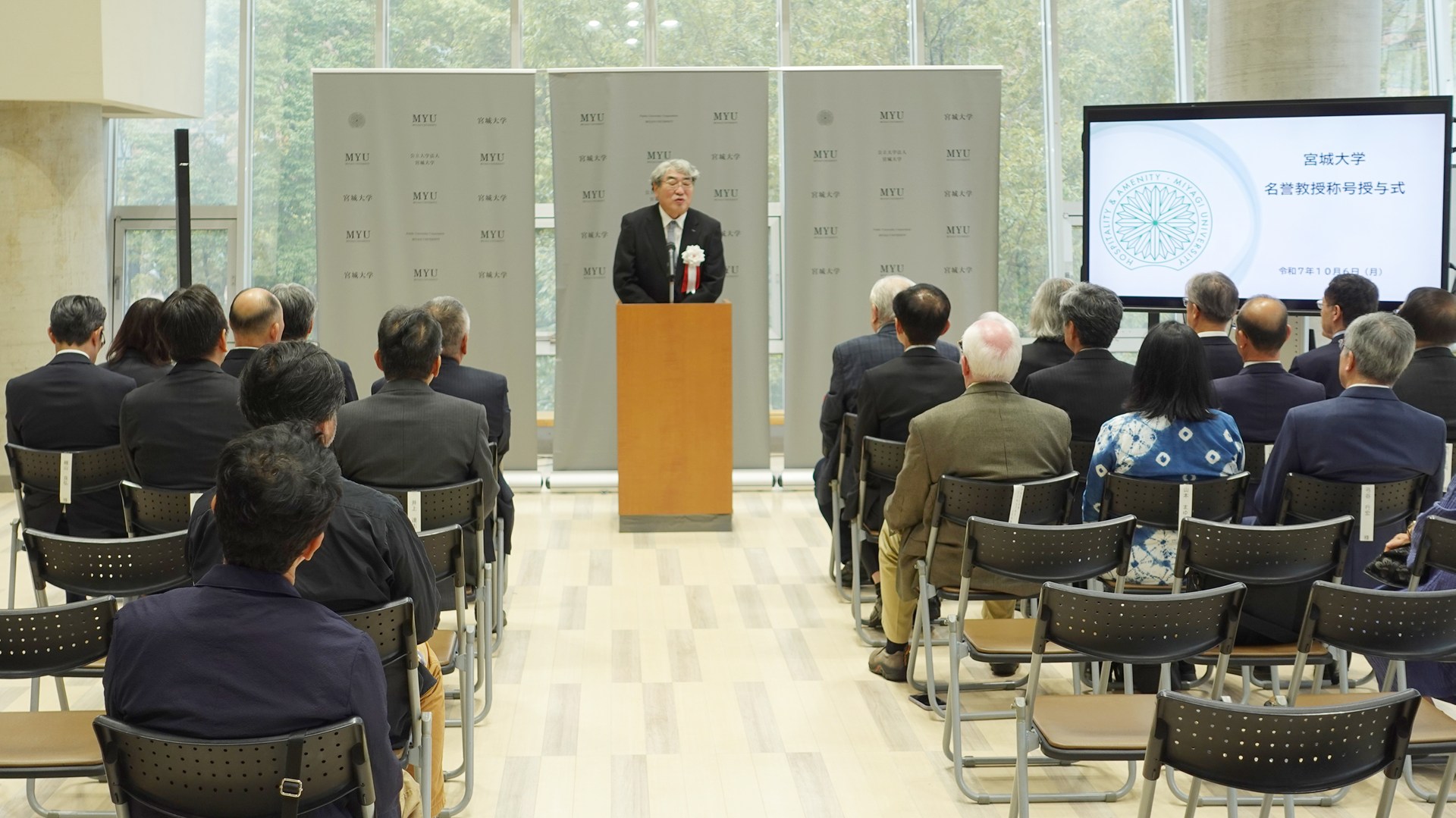 10月6日、大和キャンパスPLUS ULTRA-にて、宮城大学名誉教授称号授与式を執り行いました。