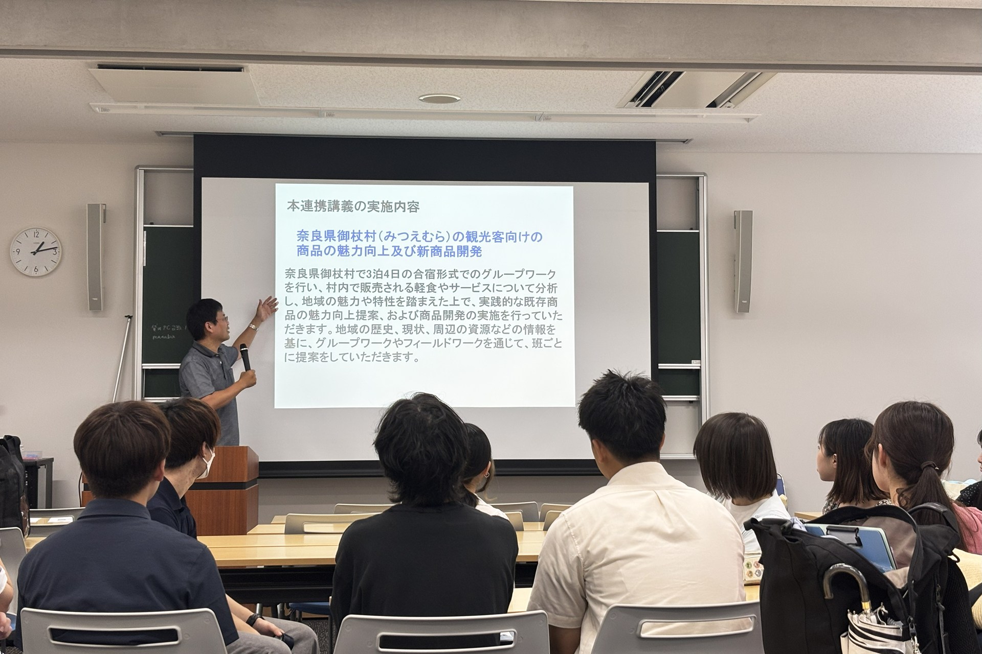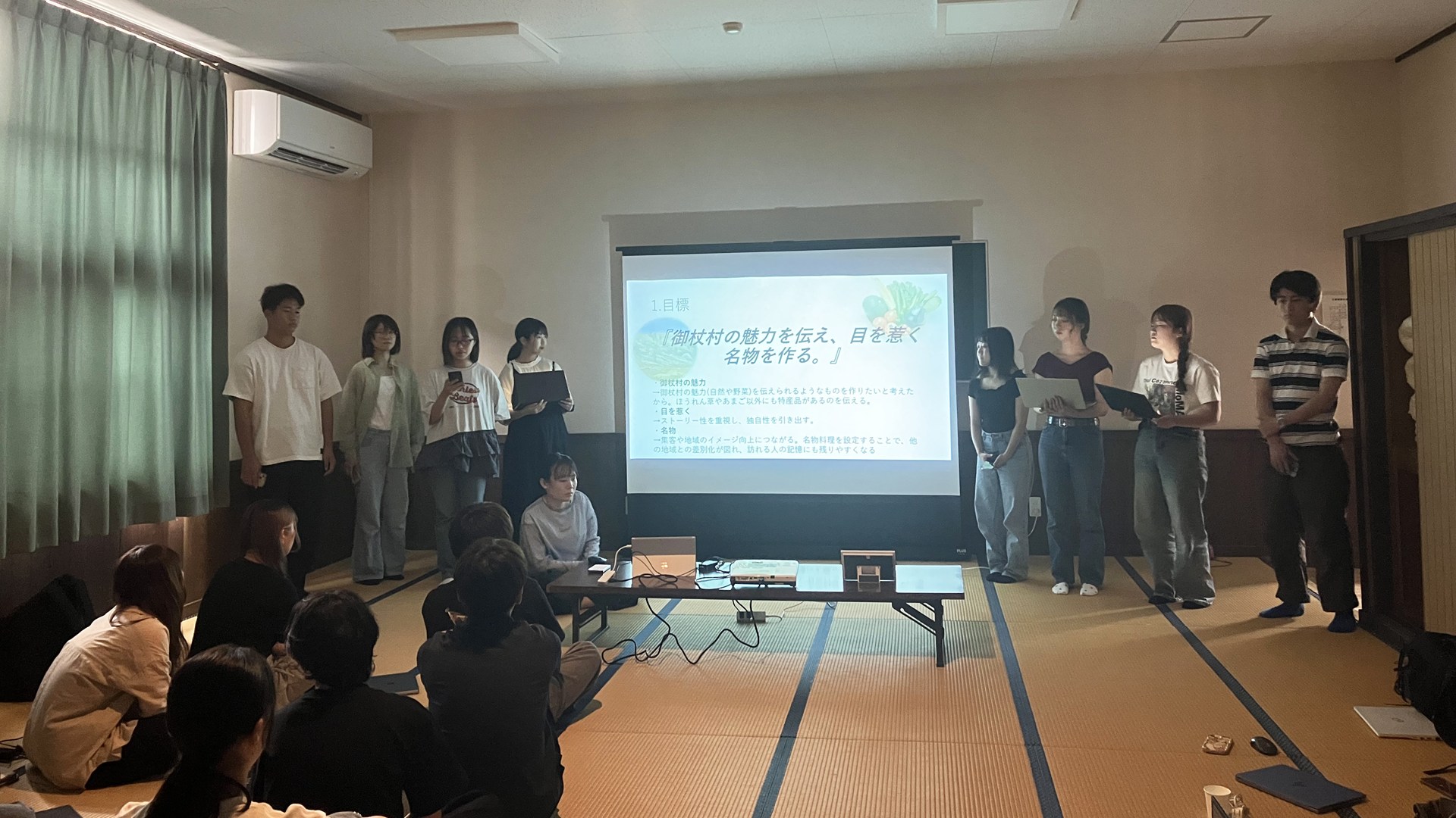 奈良県御杖村で3泊4日の合宿形式でのグループワークを行い、村内で販売される軽食やサービスについて分析し、地域の魅力や特性を踏まえた上で、実践的な既存商品の魅力向上提案、および商品開発の実施を行っていただきます。地域の歴史、現状、周辺の資源などの情報を基に、グループワークやフィールドワークを通じて、班ごとに提案しました。