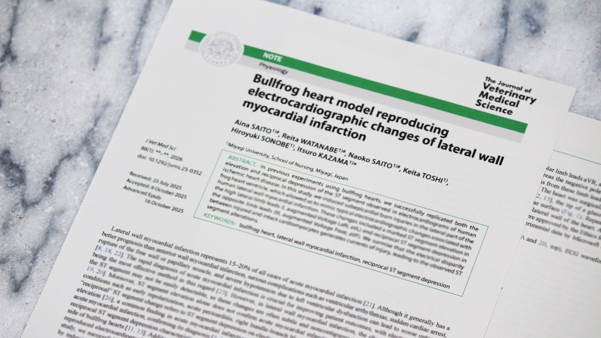 - ウシガエル急性下壁心筋梗塞モデルにおける心電図変化のメカニズム(本学看護学群学生が筆頭著者)