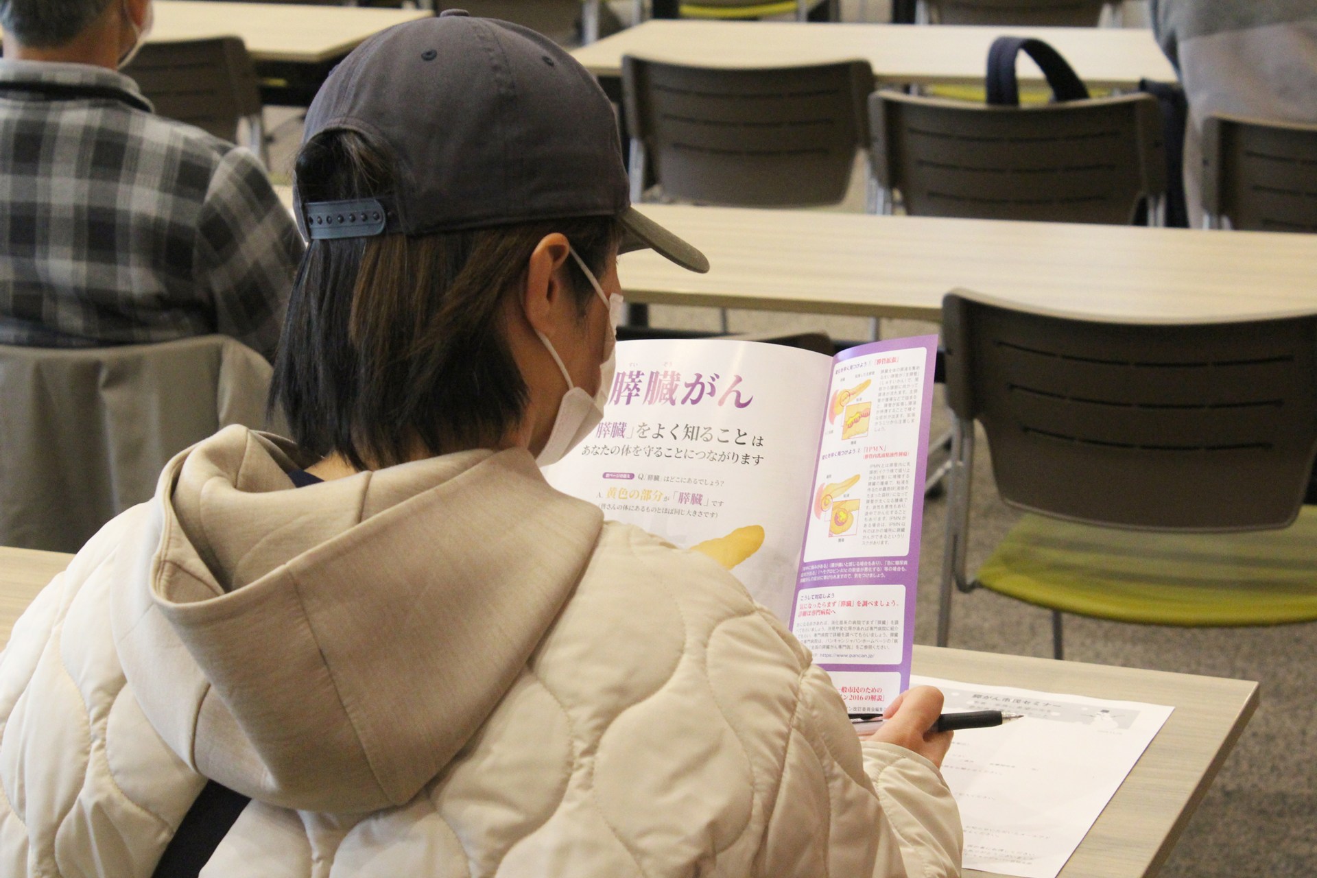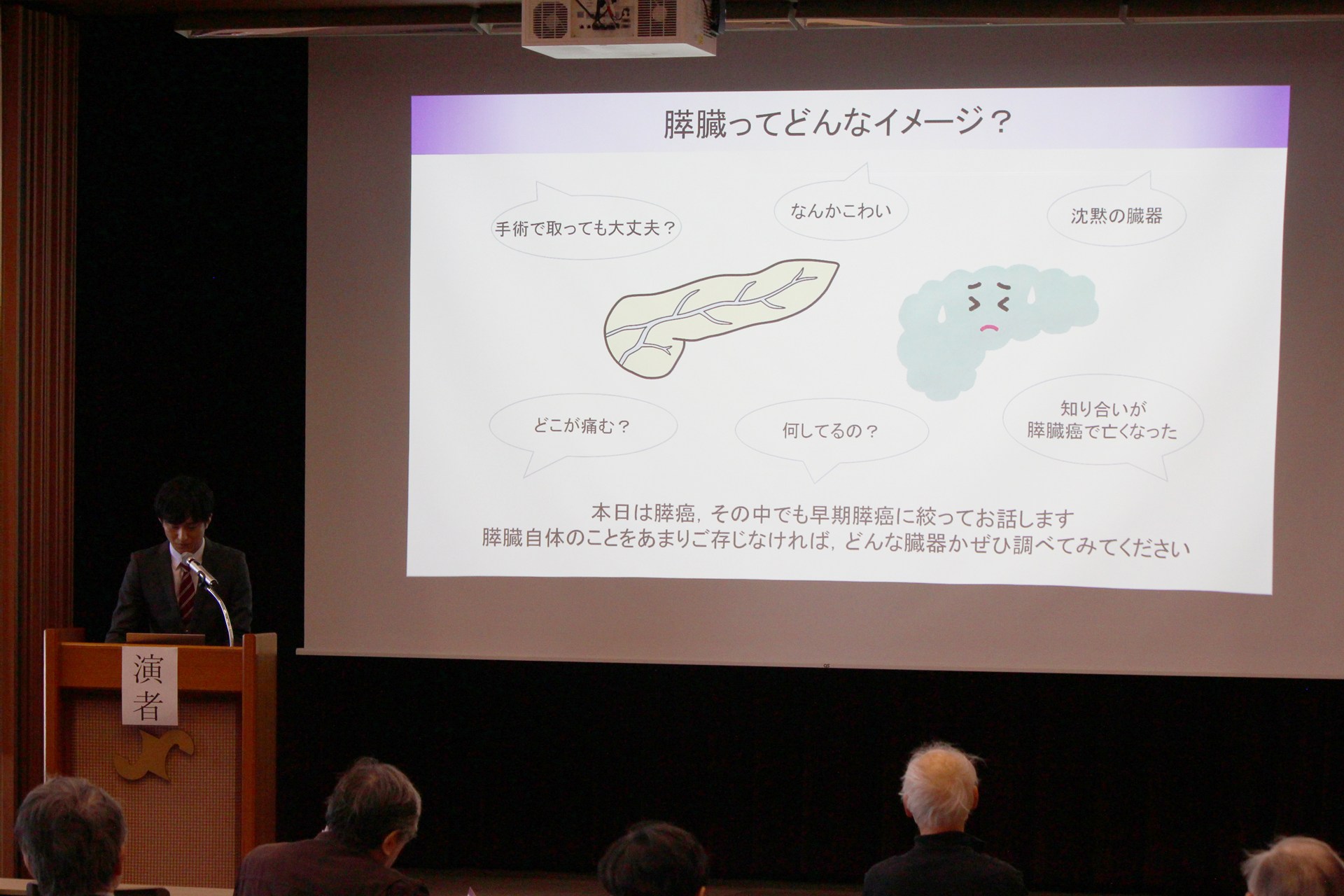膵がんは自覚症状が現れにくく、早期発見が難しい「治りにくいがん」として知られています。一方で、早期発見により生存率の向上が期待されることが明らかになってきています。イベントでは、専門医が膵がんの早期診断に向けたさまざまな取り組みを解説したほか、外科治療の役割と重要性についてわかりやすく説明しました。また、パンキャンジャパン宮城支部代表の中嶋智さんからは、膵がんサバイバーとして治療を継続されているご自身の経験が語られ、参加者の心に深く響く講話となりました。