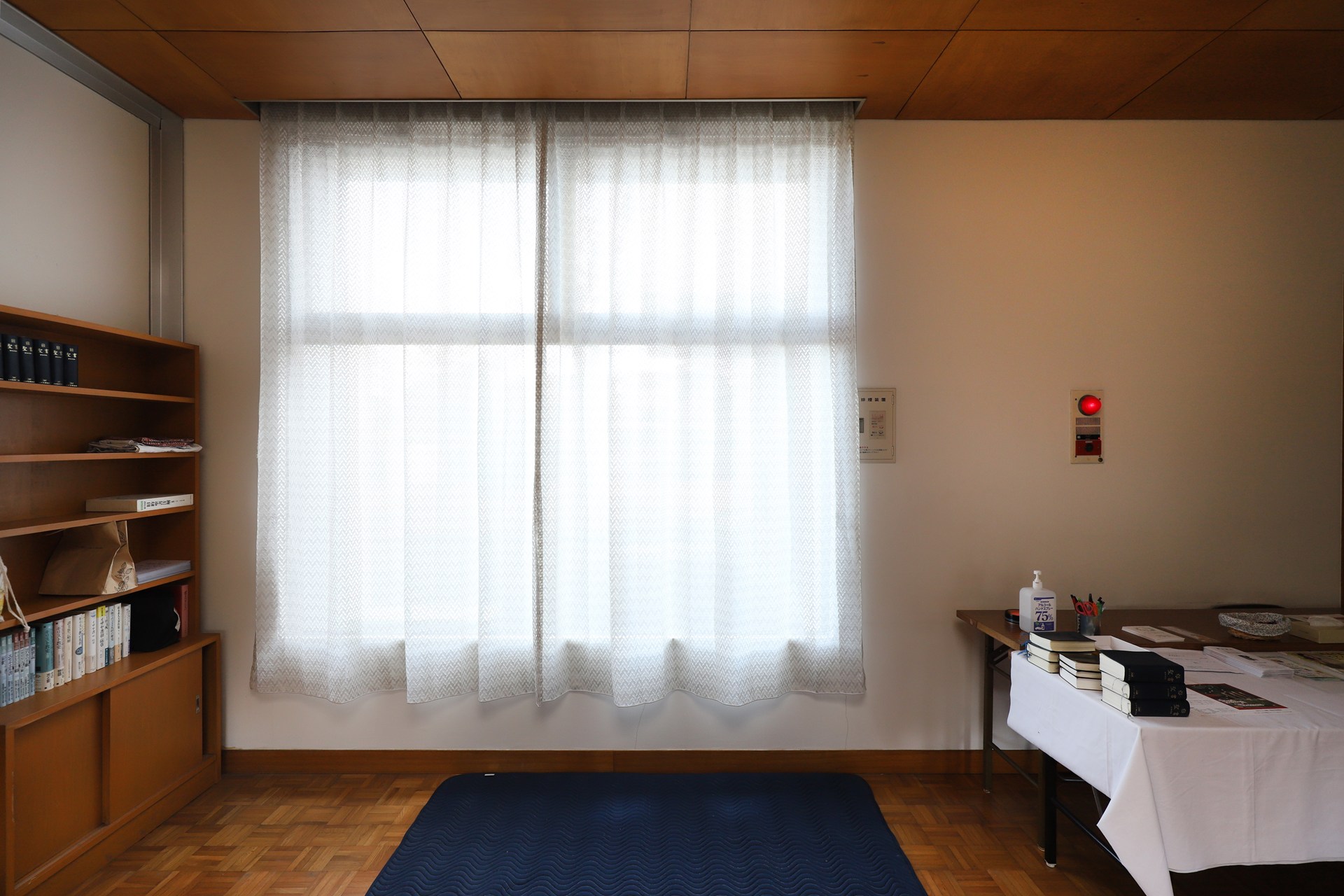 3/5に行われた贈呈式では、自分で体温調節が難しい子どもたちが快適に過ごせるようにと、遮光や断熱の機能性を重視し温もりを感じられるアイボリーのカーテン4組が贈られました。