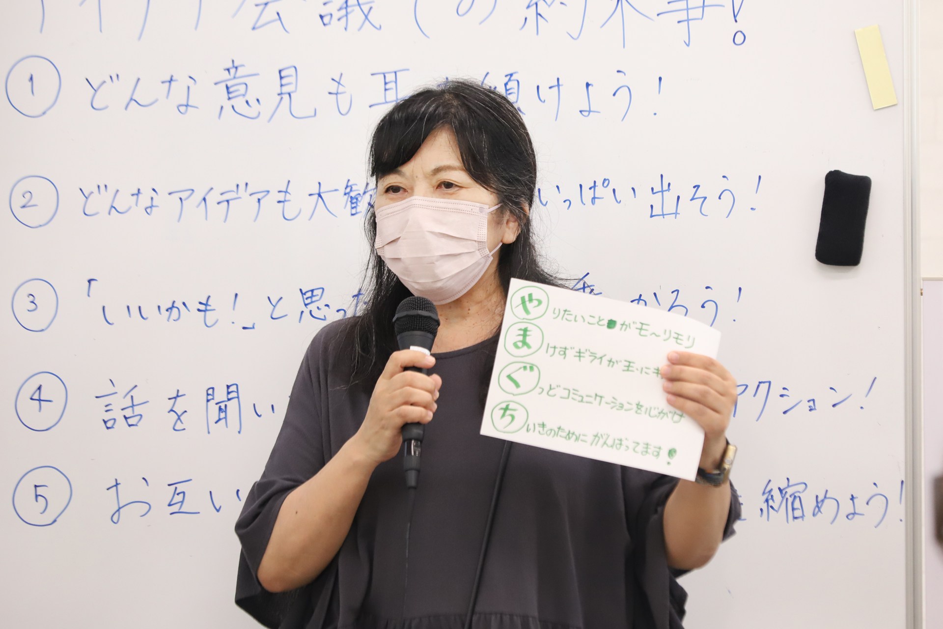 5月31日に行った「寺岡Knots 春のアイデア会議」では昔存在していた寺岡紫山オリンピックの復活や謎解き脱出ゲームといったアイデアが投げかけられ、普段関わらない世代同士がお互いに価値を共有することができる機会となりました。今回の「寺岡Knots 秋のアイデア会議」で前回集まった意見を基にブラッシュアップした企画の説明と、秋に開催するイベントのタイトル案、イベントの参加者同士が初対面でも打ち解けることができるアイスブレイクの選定を行いました。これらの内容は、秋のイベントにて活用するとともに、春・秋のアイデア会議に参加いただいた住民の方々も秋のイベントで運営スタッフとしてともに参画する予定です。