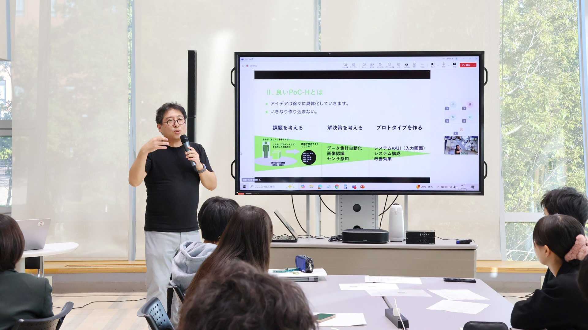 参加者は今回のプログラムで社会人メンターのサポートのもと、「身の回りのモヤモヤを解決するアイデア」や「やってみたいこと」について自分で計画し行動に移す「PoC-H(ポッチ)※」に取り組んでいきます。体験の後に開催された講義・ワークショップでは、PoC-H(ポッチ)の進め方について説明があり、参加者は「課題を考える」「解決策を考える」「プロトタイプを作る」という流れや、まずは考えたアイデアについて近しい人に意見を聞いてみることが大切ということを理解しました。