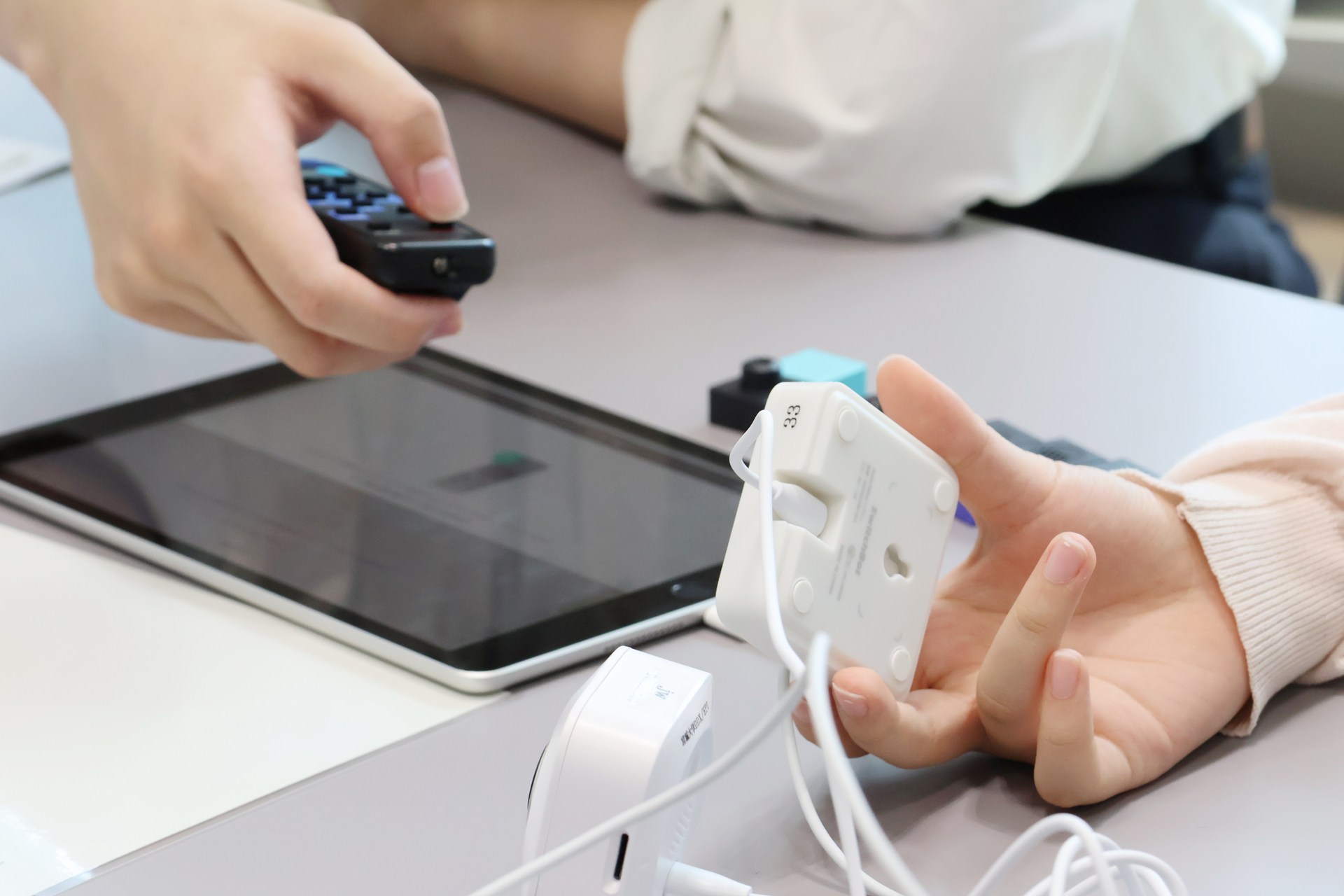 今回与えられたのは、「人が動いたらモニターやライトを自動で点ける」という課題。SwitchBotには家電製品の信号を登録することができ、さらにMESHと接続することで、MESHのセンサーが人の動きを検知したことをきっかけにモニターやライトを点灯させることができます。インターネットとものがつながる「IoT」(Internet of Things)の世界を体験しました。参加者はさらに今回の体験を踏まえ、MESHやSwichBotを日常生活のどんな場面で活用できるかを考えました。MESHの明るさセンサーを活用し、「屋外の明るさに合わせてカーテンが開け閉めされる」などのアイデアが出されました。
