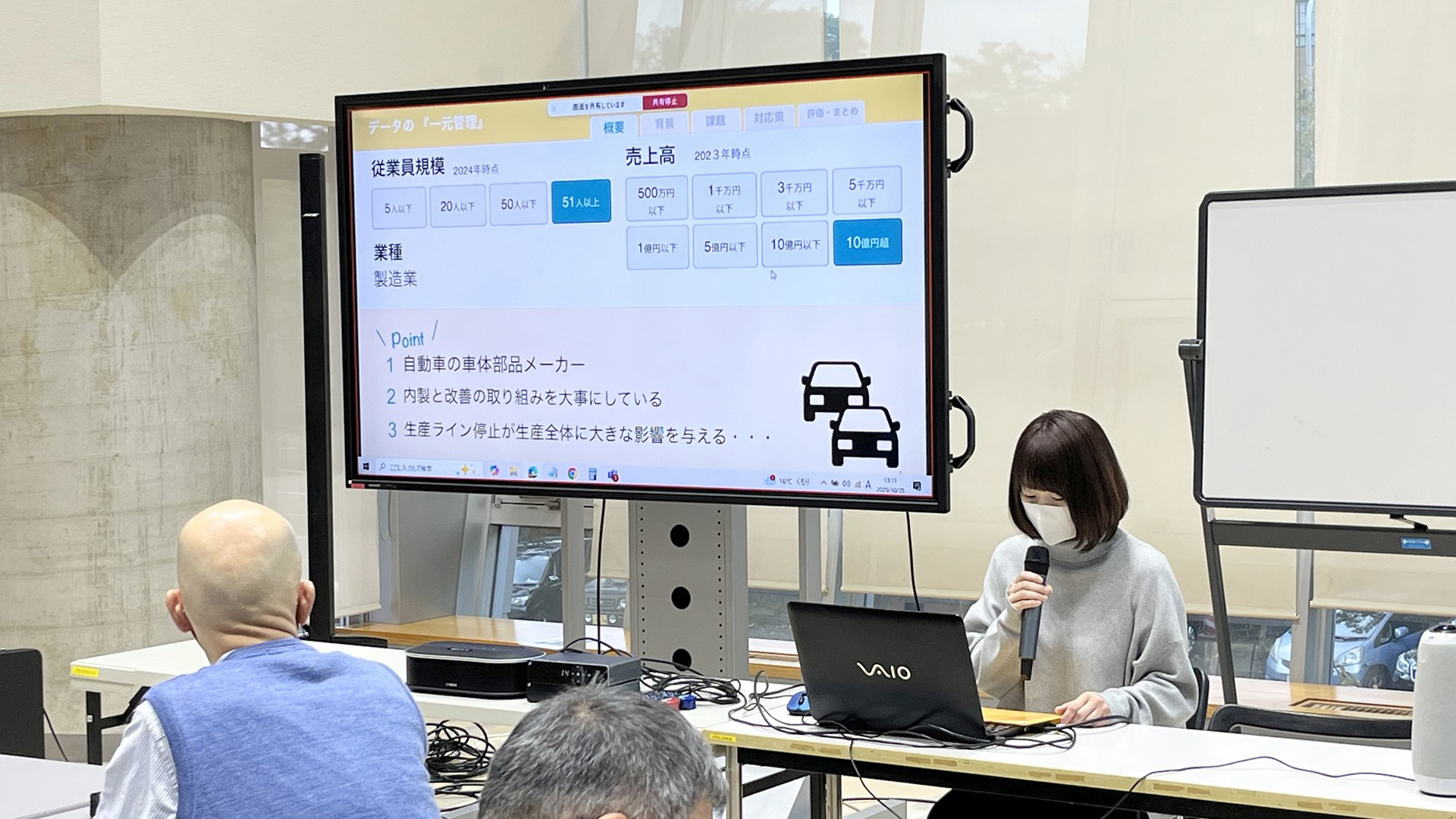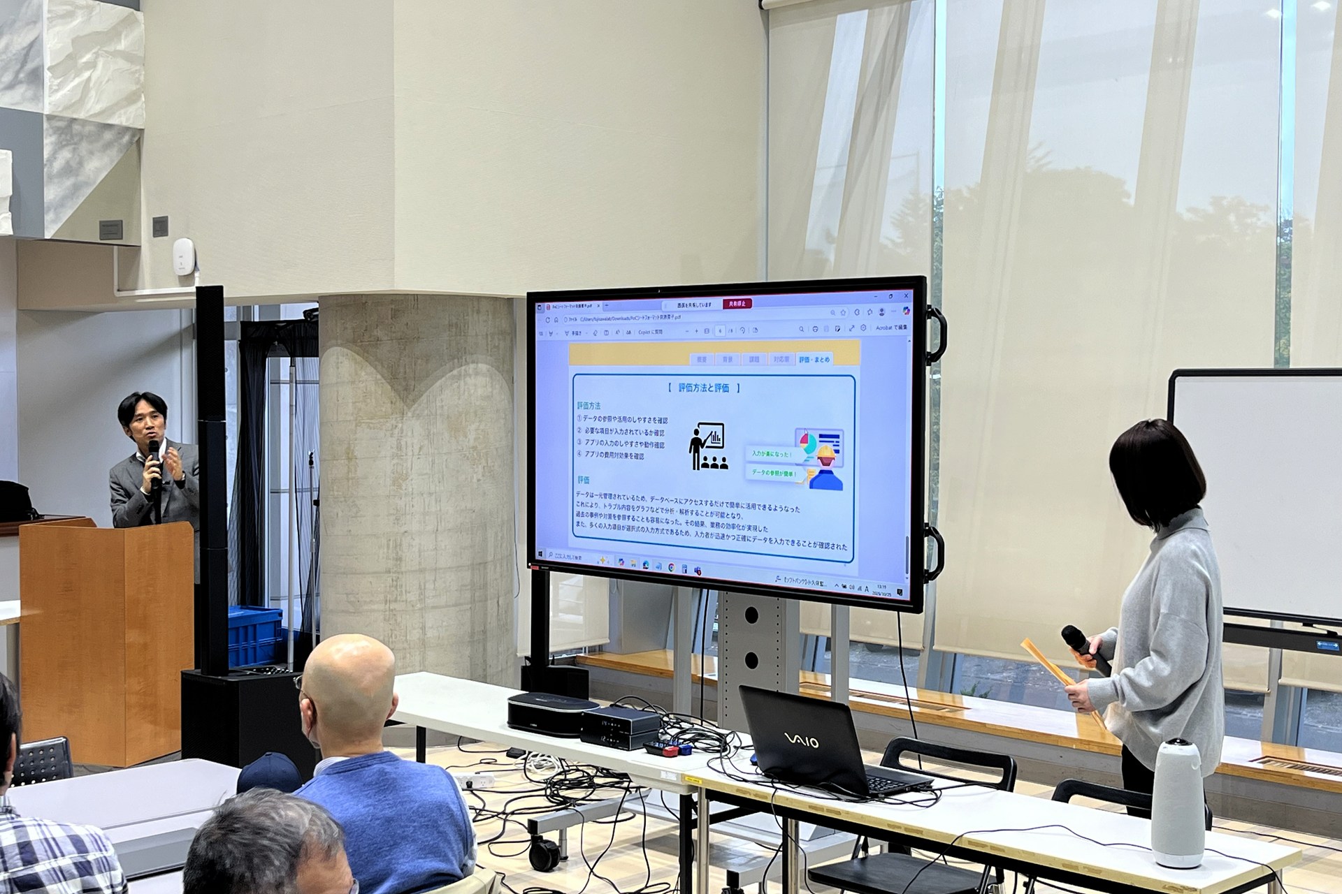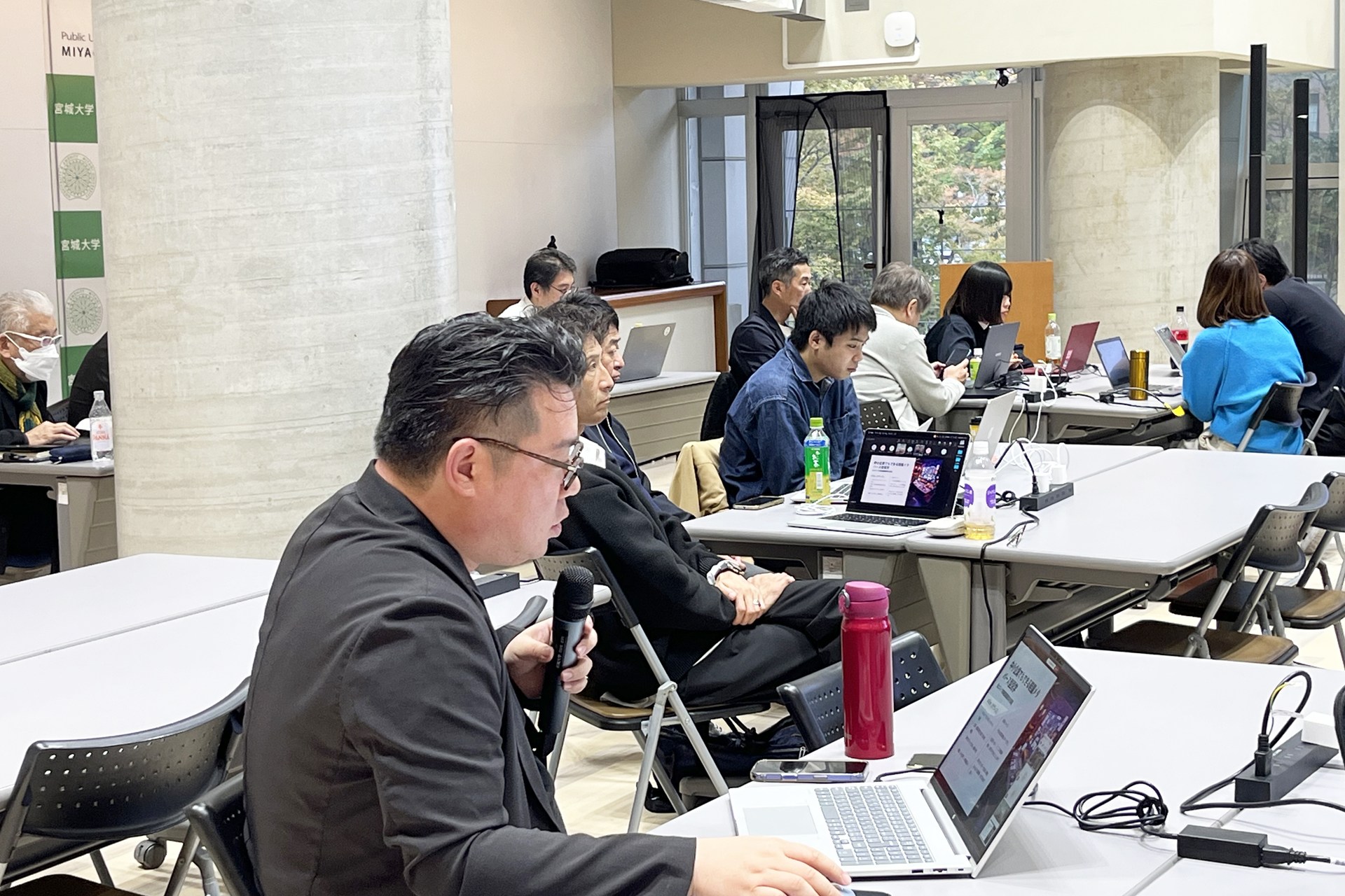 宮城大学では、宮城県からの受託事業により、県内の中小企業等においてDX推進を担う方々を対象としたDX人材育成プログラム「Downstreamから学ぶDX」リカレント教育プログラムを実施しています。本プログラムは、受講生が8月から12月までの15週間にわたり、自らの職場における具体的な課題解決に向けたPoC(概念実証評価)に取り組む実践的な人材育成プログラムです。10月25日、プログラムの折り返し地点として全体スクーリング2を開催しました。今回のスクーリングでは、受講生同士が進捗状況を共有するとともに、昨年度の受講生によるPoC事例の発表が行われ、現場を巻き込むコンセプト検証の重要性について学ぶ貴重な機会となりました。