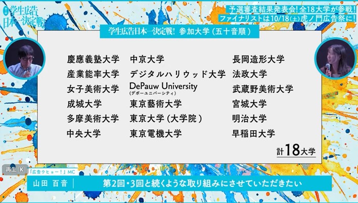 事業プランニング学類マーケティングゼミでは、企業へのマーケティング・コミュニケーションの提案や、新規事業開発の提案などの活動に取り組んでいます。このたび、マーケティングゼミに所属する有志5名(奥裕二郎、佐藤那奈、鈴木美憂、平塚結、庄子愛菜)が、全国の学生クリエイターが集う「第1回学生広告日本一決定戦」に参加し、慶應義塾大学・成城大学との決勝戦を勝ち抜き、ストラテジープラン部門において見事初代日本一に輝きました。