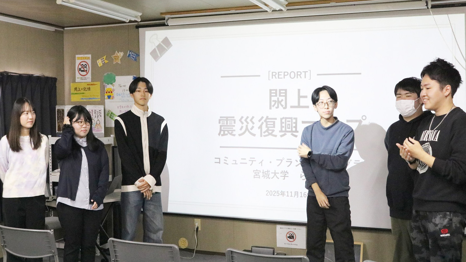 11/16には閖上の記憶で、語り部として活動を体験するとともに本講義を通じた取り組みについて報告を行いました。制作したマップは、インタビューに御協力いただいた閖上地区内の施設と名取市役所に配架しています。