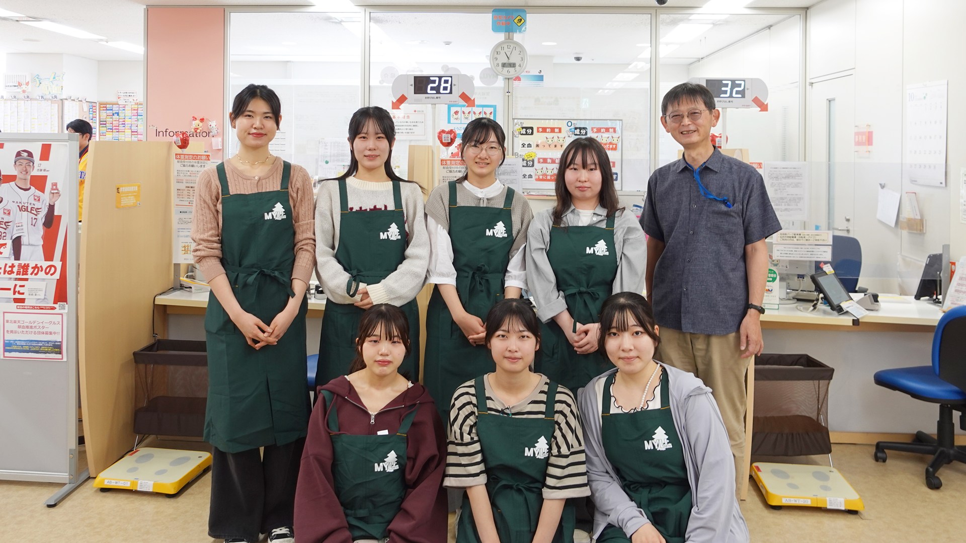 「エシカル消費」とは、よりよい社会に向けた、人や社会・環境に配慮した消費活動のことであり食品ロス・地産地消・フェアトレードなどの考え方が含まれます。食産業学群の学生たちはこれまで、ポッケの森と共同で「誰かに教えたくなる!」をテーマとした新しいスイーツの企画・開発や、イベントなどにおける販売活動を行っており、2024年度の6月よりエシカルボランティアサークル「MYUの森」として活動を開始。各献血ルームにおけるコラボ・スイーツお渡しには、食産業学群の学生が10月4日は13名、5日には6名が参加。学生たちは、献血にご協力いただいた方一人ひとりに手渡しして「MYUの森」の取り組みをPRしました。これらスイーツの販売増は、就労している障害者の工賃アップにつながり、エシカル消費を広げる役割を果たします。