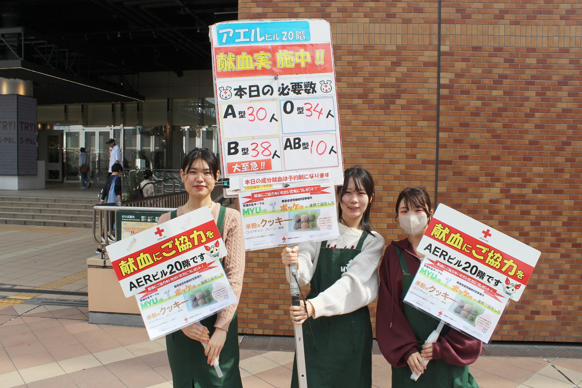 このたび、高校3年生の時から続けてきた献血にMYUの森として関わることができ、とても嬉しかったです。広報活動では、献血に対するハードルの高さを感じる場面もありましたが、協力者の方にクッキーをお渡しした際には、目を合わせて笑顔で受け取っていただき私も心が温まりました。今後も社会貢献につながる活動に取り組み、MYUの森やエシカル消費(人や環境、地域に配慮した取り組み)を知ってくださる方が一人でも増えるように頑張ります。