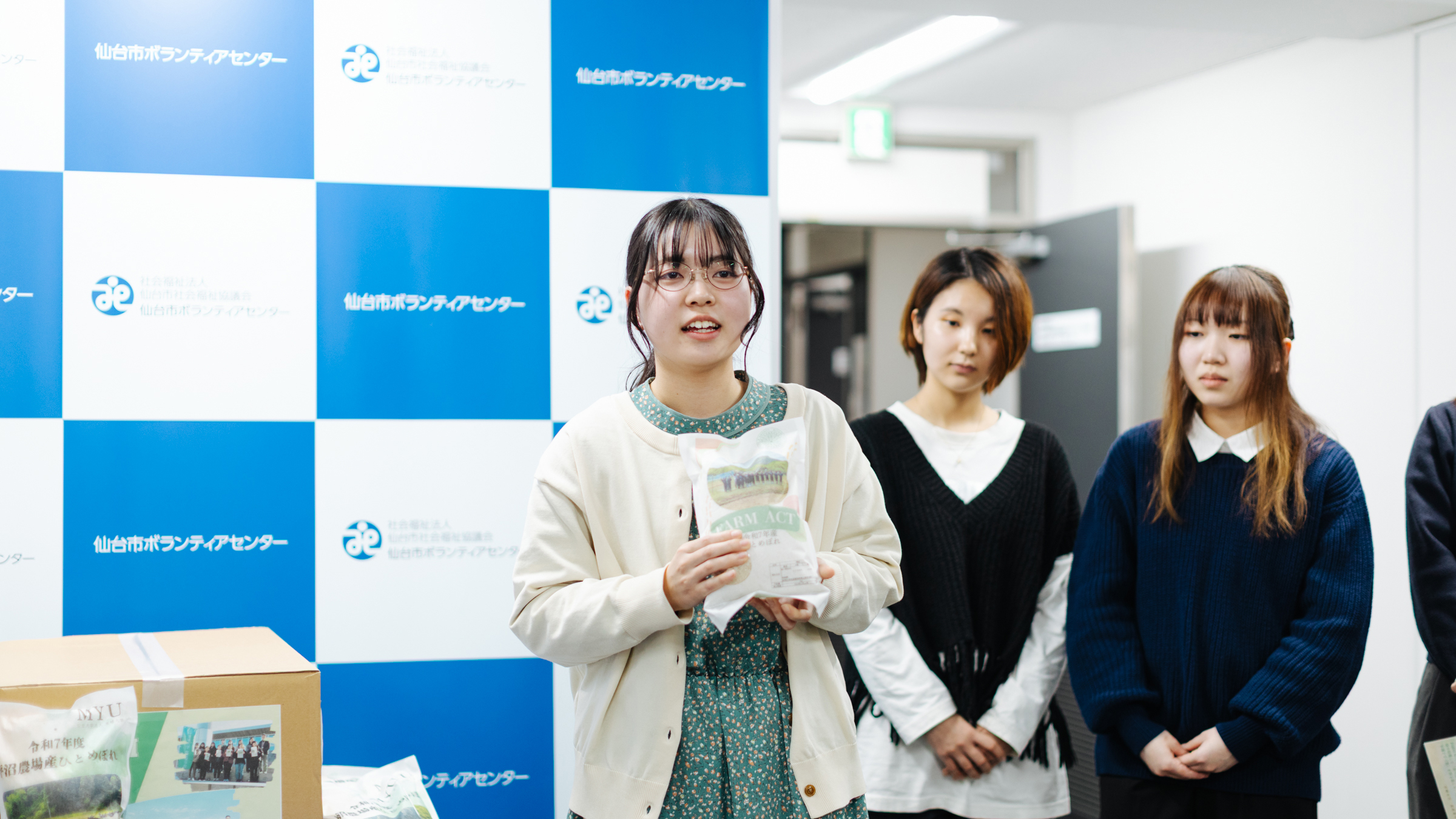 また、今回寄付を行った学生代表の村山円香さんは「今回は田植えから稲刈り、精米、袋詰めに至るまで携わった新米を寄附しました。私たちFARM ACTが手がけたパッケージデザインには米作りの風景も添えているので『食』を作る楽しさにも関心を寄せてもらえたら嬉しいです。また、学生たちが丹精込めて作ったお米なので、多くの方々にたくさん食べて味わっていただきたいです。こども食堂でのボランティア経験や食の学びを活かし、これからも社会貢献できるような活動を展開していけたらと思います。今回の寄附を通じて、子どもたちの食育の充実のみならず、こども食堂の運営面における支援にもつながることを願っております」とコメントしています。
