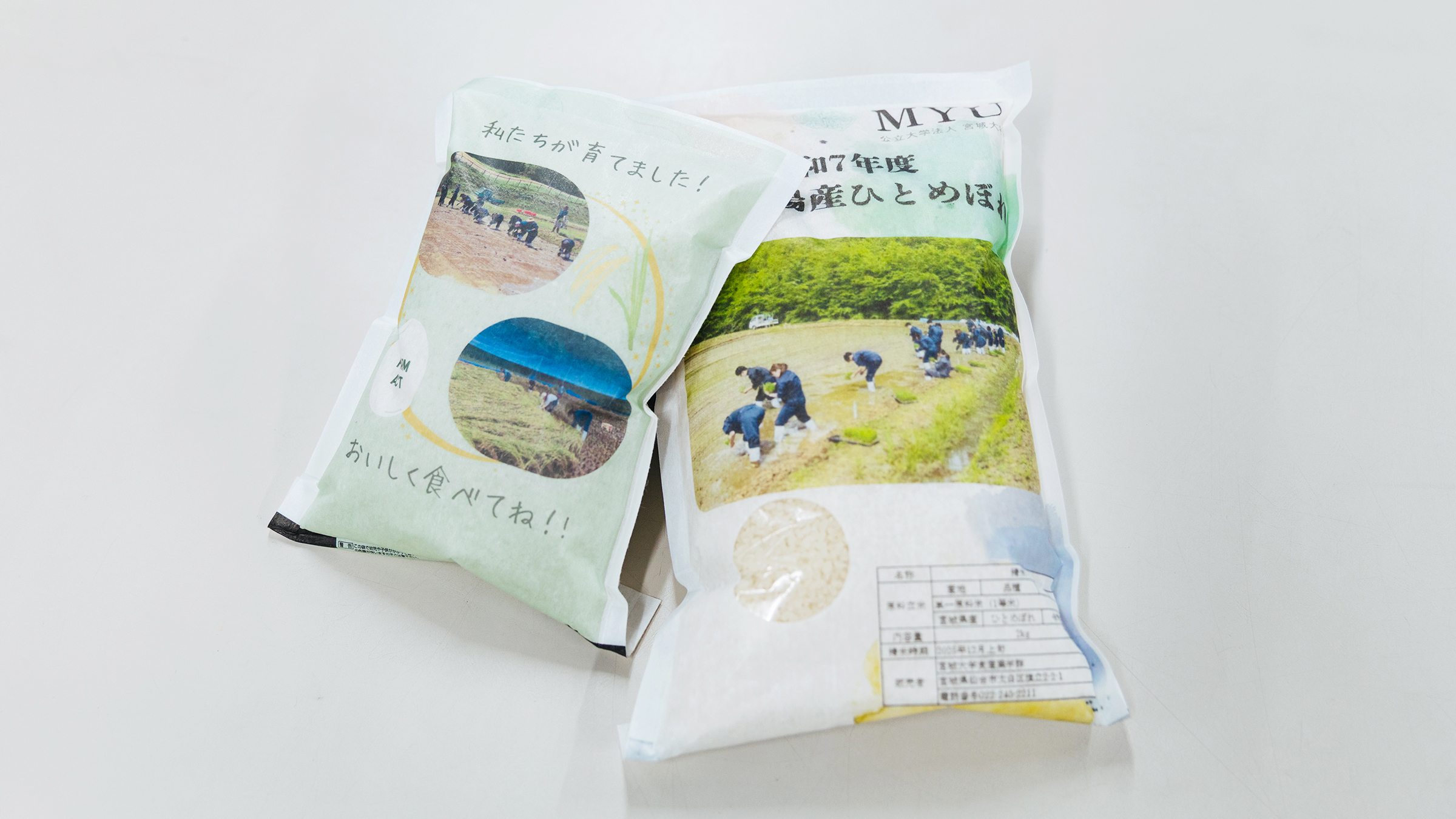 宮城大学食産業学群では、農畜水産物の「生産」から「加工」「流通」「サービス」、そして「消費」までをカバーし、食に関する課題を自然科学、社会科学両面の学びから解決する人材を育成しており、附属農場である「坪沼農場」では生産実習の一部として水稲栽培(播種、移植、収穫)を行い、また、学生のサークル活動の一環として、サークル「FARM ACT」の学生が太白キャンパス内にある「旗立農場」においても水稲栽培を行っています。お米の生産についても深く学ぶ地域の大学として、新米がとれても価格が下がらず高止まりしている状況下において、将来の宮城・日本を担う子ども達へ少しでも貢献するため、坪沼農場での農場実習で生産した新米(2kg×50 袋計100kg)と旗立農場でサークル「FARM ACT」の学生達が作った新米(1kg×20 袋計20kg)を、仙台市のこども食堂へ寄付しましたのでお知らせいたします。