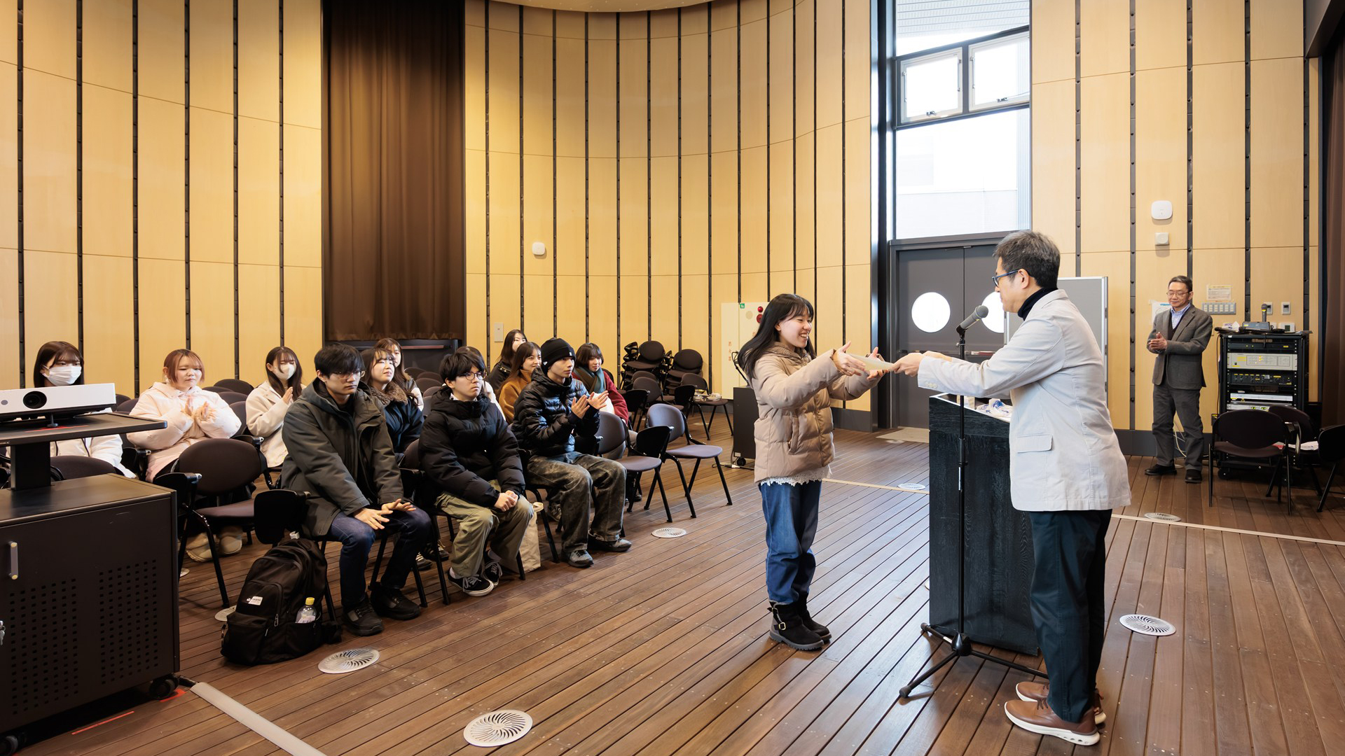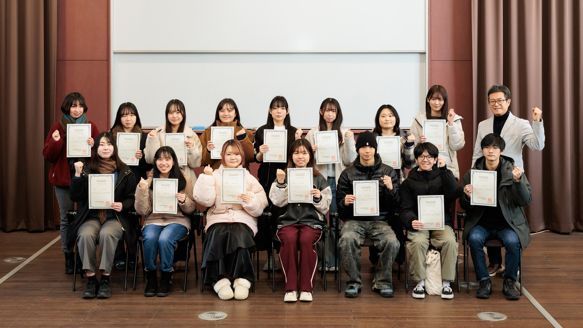 宮城大学太白キャンパスにおいて、日本農業技術検定(農林水産省・文部科学省後援)の合格証書授与式が行われました。今年度は、日本農業技術検定3級に食産業学群の16名(生物生産学類3年生11名・2年生1名、フードマネジメント学類3年生2名・2年生1名、1年生1名)が挑戦し、見事全員が合格しました。