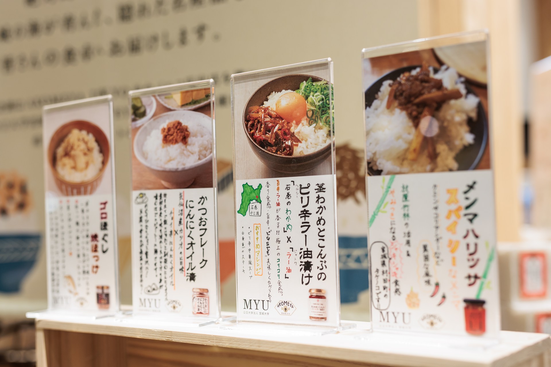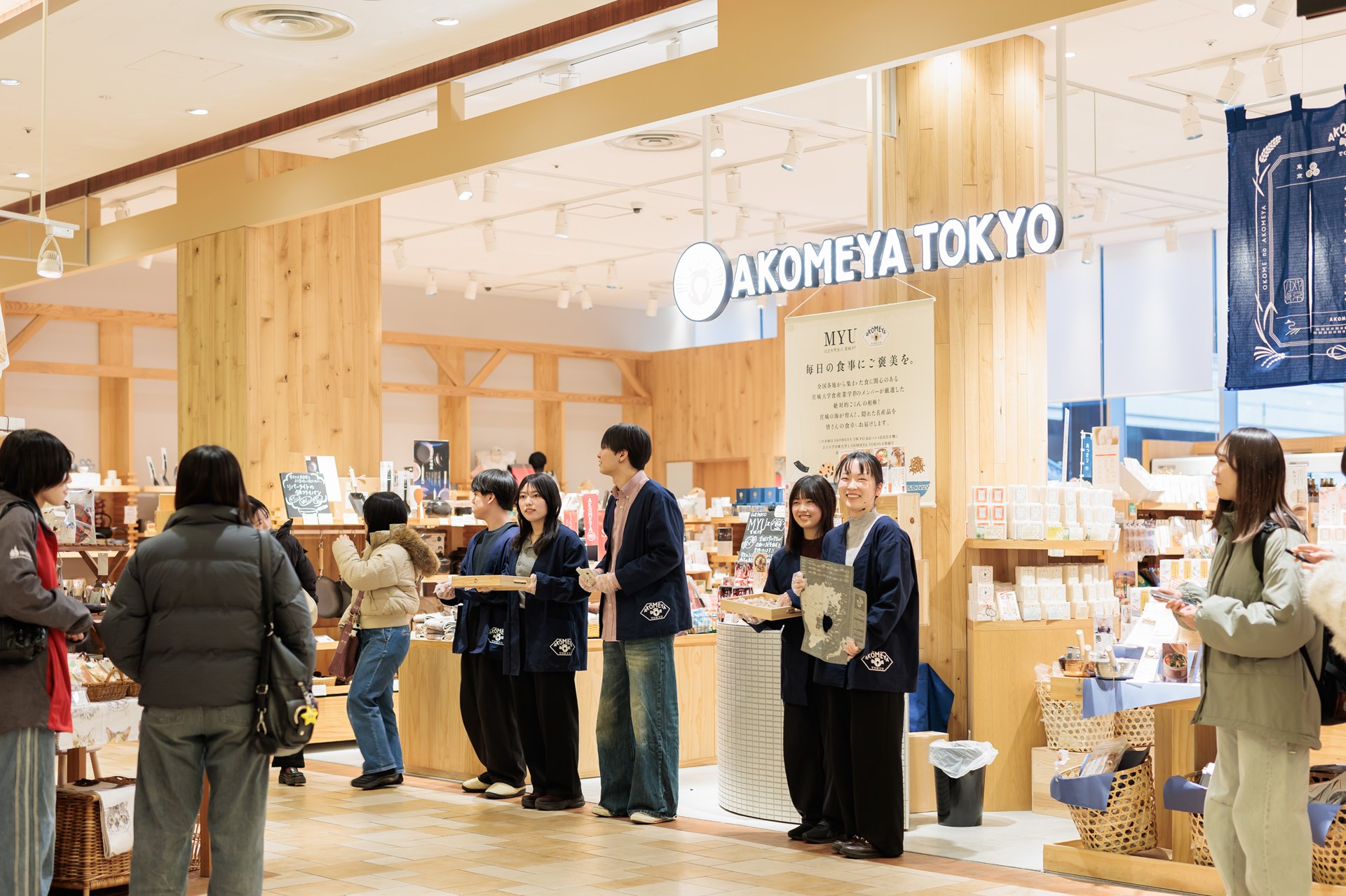 AKOMEYA TOKYO は「一杯の炊き立てのごはんから広がるおいしい輪」をコンセプトに、全国各地から厳選したさまざまな種類のお米を中心に、ごはんと相性抜群のごはんのお供や和食の中心にある出汁や調味料、食器・調理道具などを扱い、東京を中心に 36店舗 + オンラインショップを展開するライフスタイルショップです。2013 年 4 月に銀座の店舗から始まりました。全国の生産者との強い繋がりと信頼関係のもと「ほんもの」のおいしさにこだわった商品開発やセレクトを行っており、古くからある日本の食文化や伝統を現代のライフスタイルに合わせ提案しています。