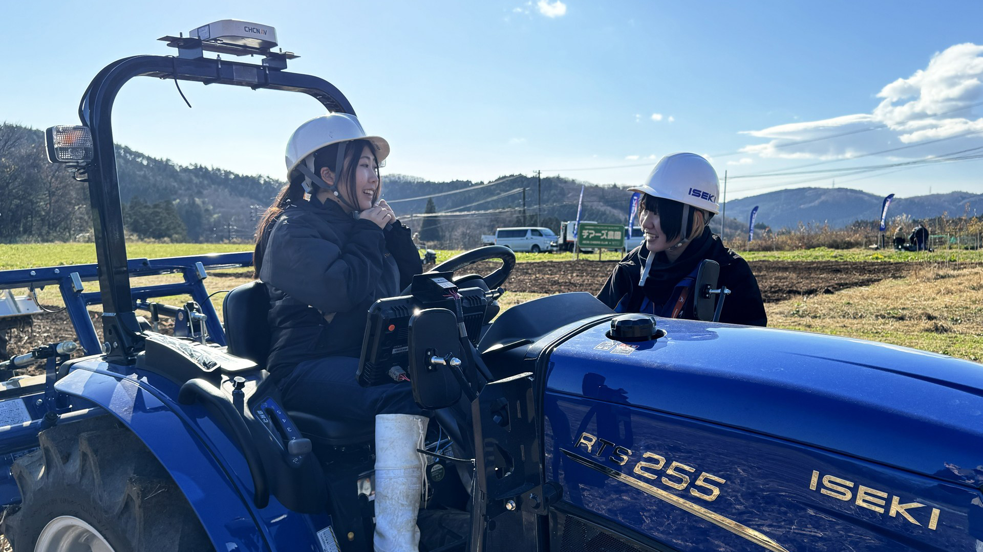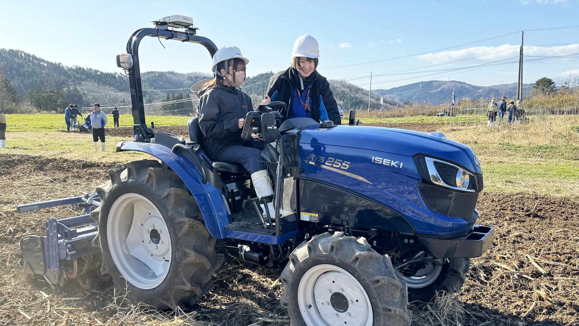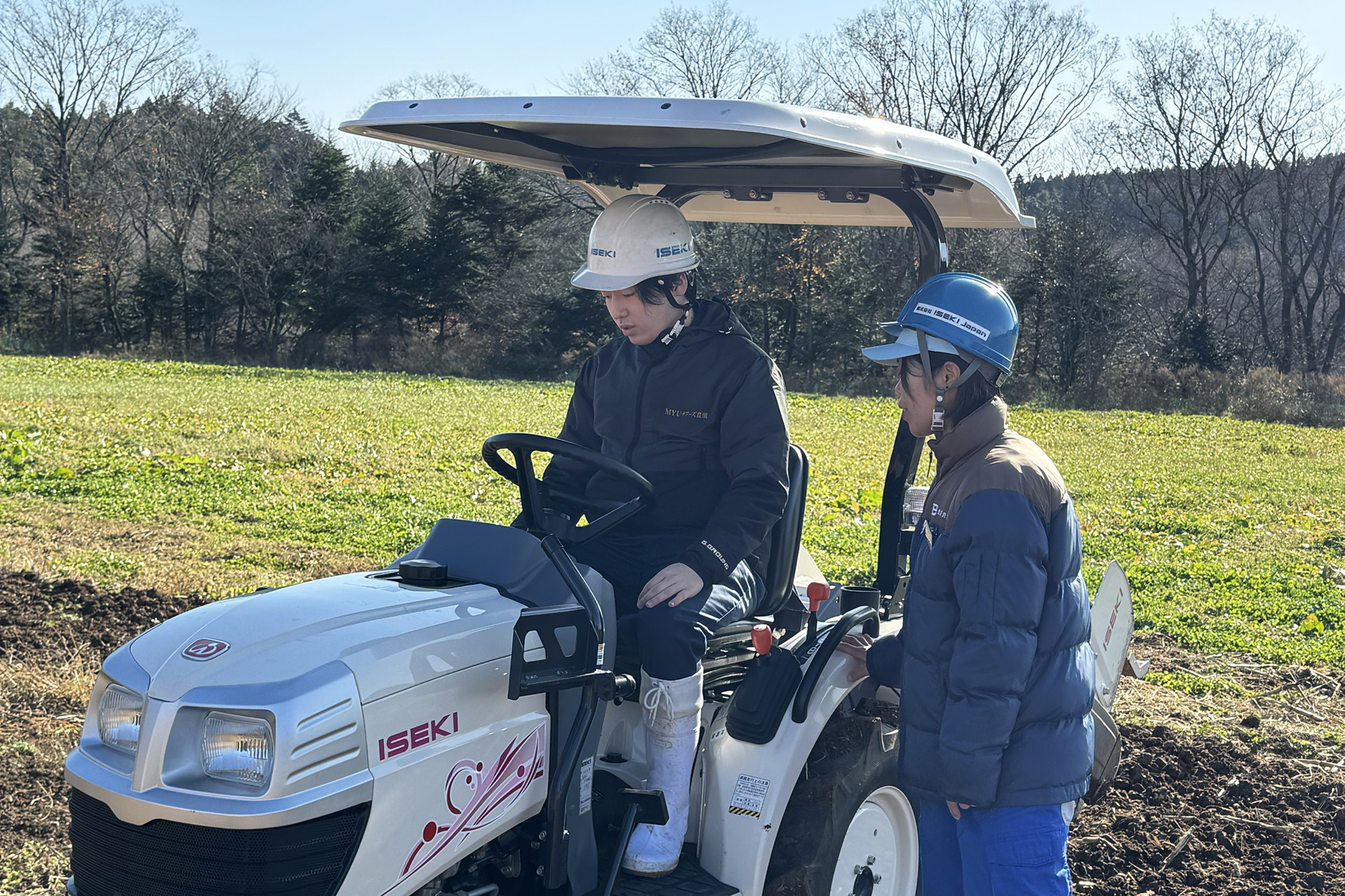 農林水産省が推進する女性農業者の活動を支援する取り組みである農業女子プロジェクトの一環として、11月30日、食産業学群の学生8名を対象とした、耕運機や最新型トラクターなどの安全な使用方法を学ぶ体験セミナーを開催しました。※セミナーの開催にあたる機器の貸し出し・操作指導について、ISEKIグループに全面的にご協力いただいています。