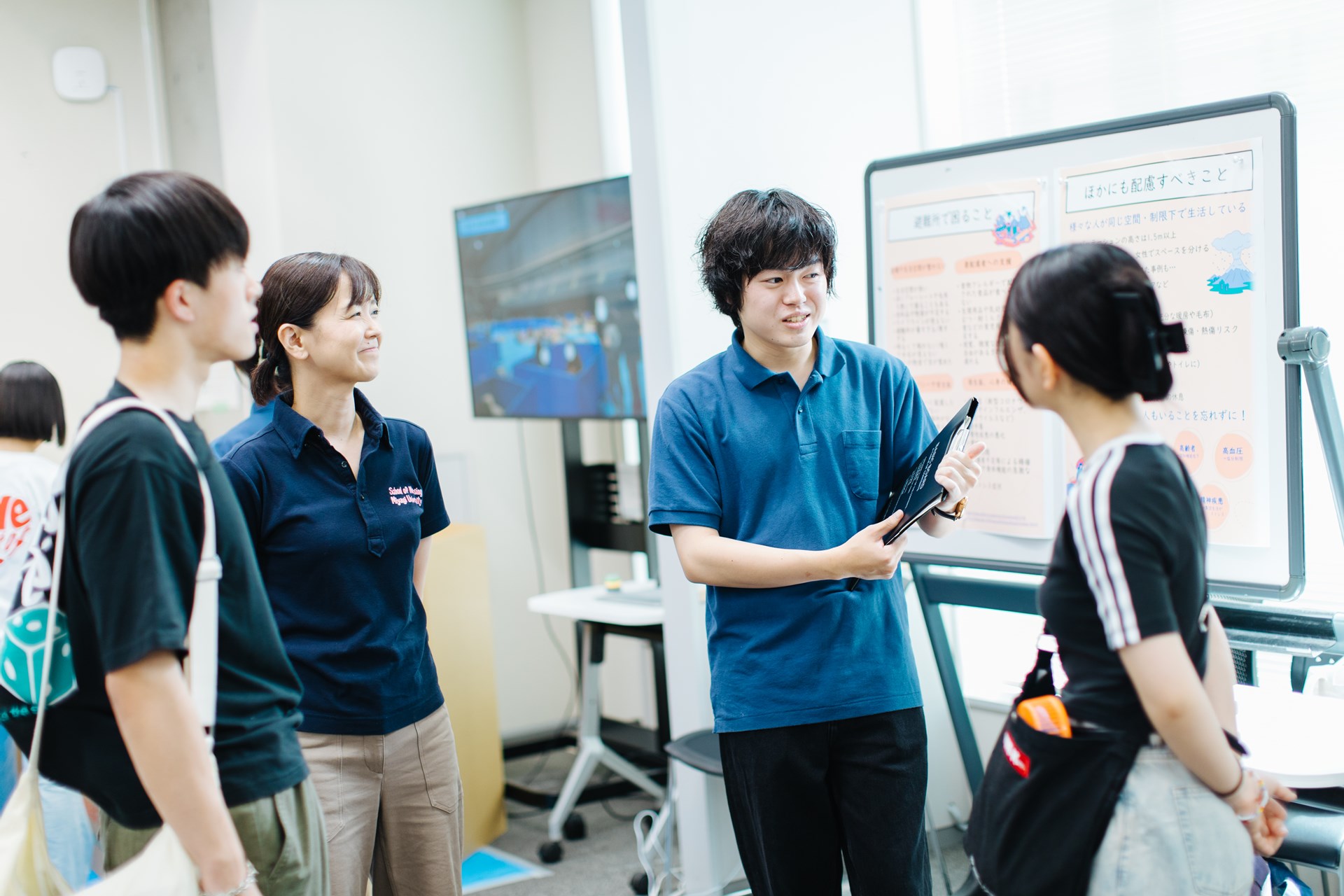 講義で使われる機器や書籍、教員のパネルなどを展示しています。さらに、地域創生学類の学生と個別にお話しすることができます。大学生活を、よりリアルに体感してみませんか?