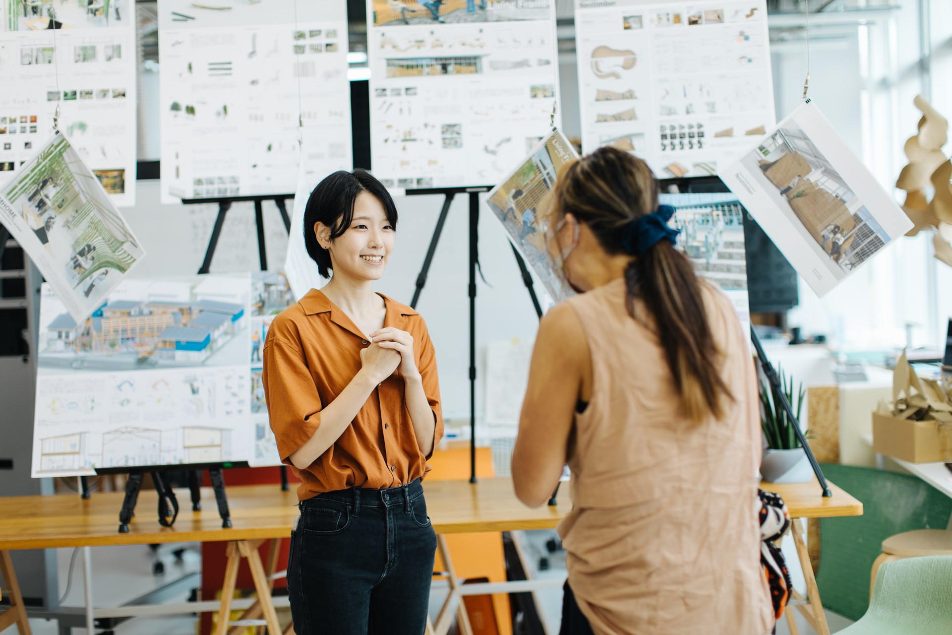 建築学生が制作した 1/1 スケールの竹製パビリオンを展示。見て触れて体感してください!