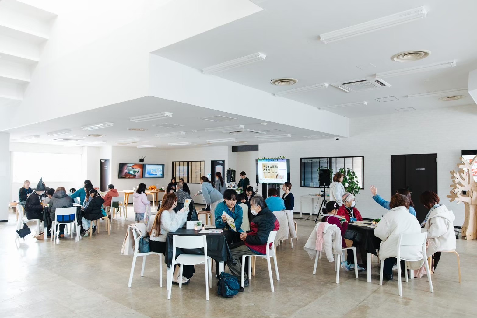既存区画壁を撤去し、200 ㎡以上の広々とした空間を確保しました。地域の小中学生の放課後学習や地域の方々の集まりなど、幅広い年齢層の方々が自由にご利用頂けることに加えて、定期的に世代間交流を促進するイベント等を開催する予定です。
