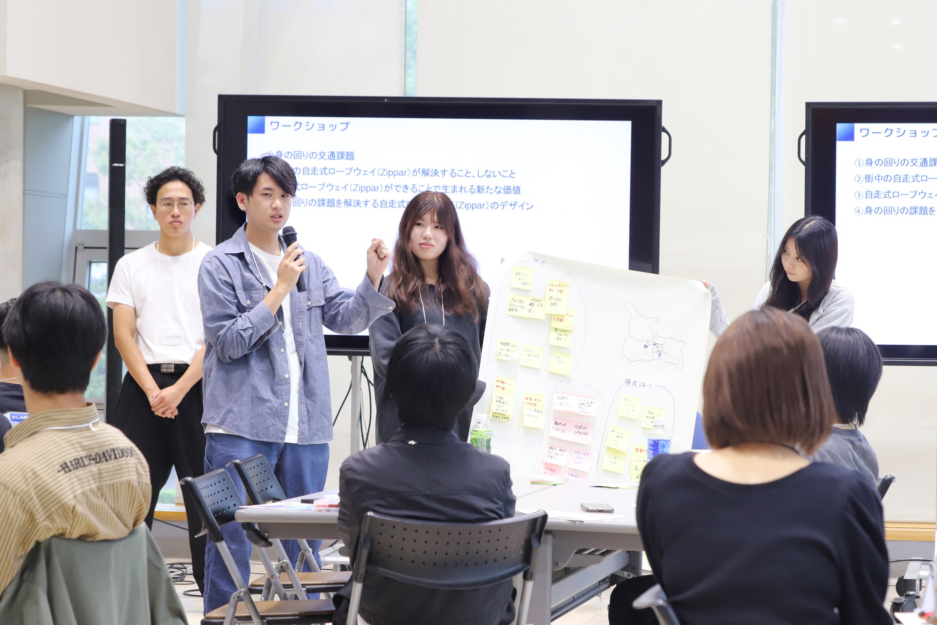 Brushの学生たちは、キャンパスへの通学に際して感じる公共交通の利便性に関する課題や、それに伴う新交通に関する構想への興味から今回の取り組みを企画しました。レクチャーでは、Zippar自体の構造から、現在の実証実験段階、運営の方式、どのように地域の交通を担っていくのか、といった話題が紹介されました。また、実際に「Zippar」についての計画を扱うワークショップを通じて、学生たちは新しい事業を立ち上げる目的や方法として、既存の事業と「競争する」だけでなく、「共創する(協力する)」という戦略的な考え方があることを学びました。新しい交通システムを導入することで、現在人員が不足している「枝線(しせん:主要な路線から分かれたローカルな路線)」に、より多くの人員や資源を振り分ける余裕が生まれる可能性が示唆されたことは学生たちにも大きな気づきとなったようです。