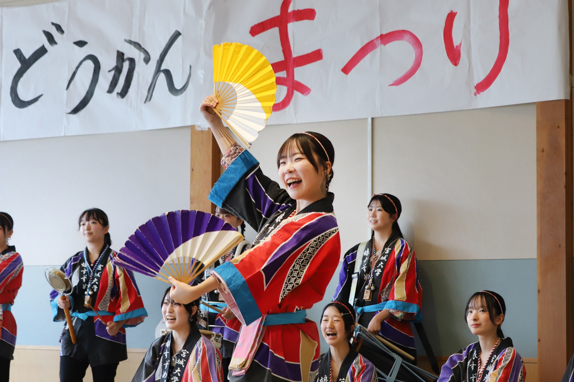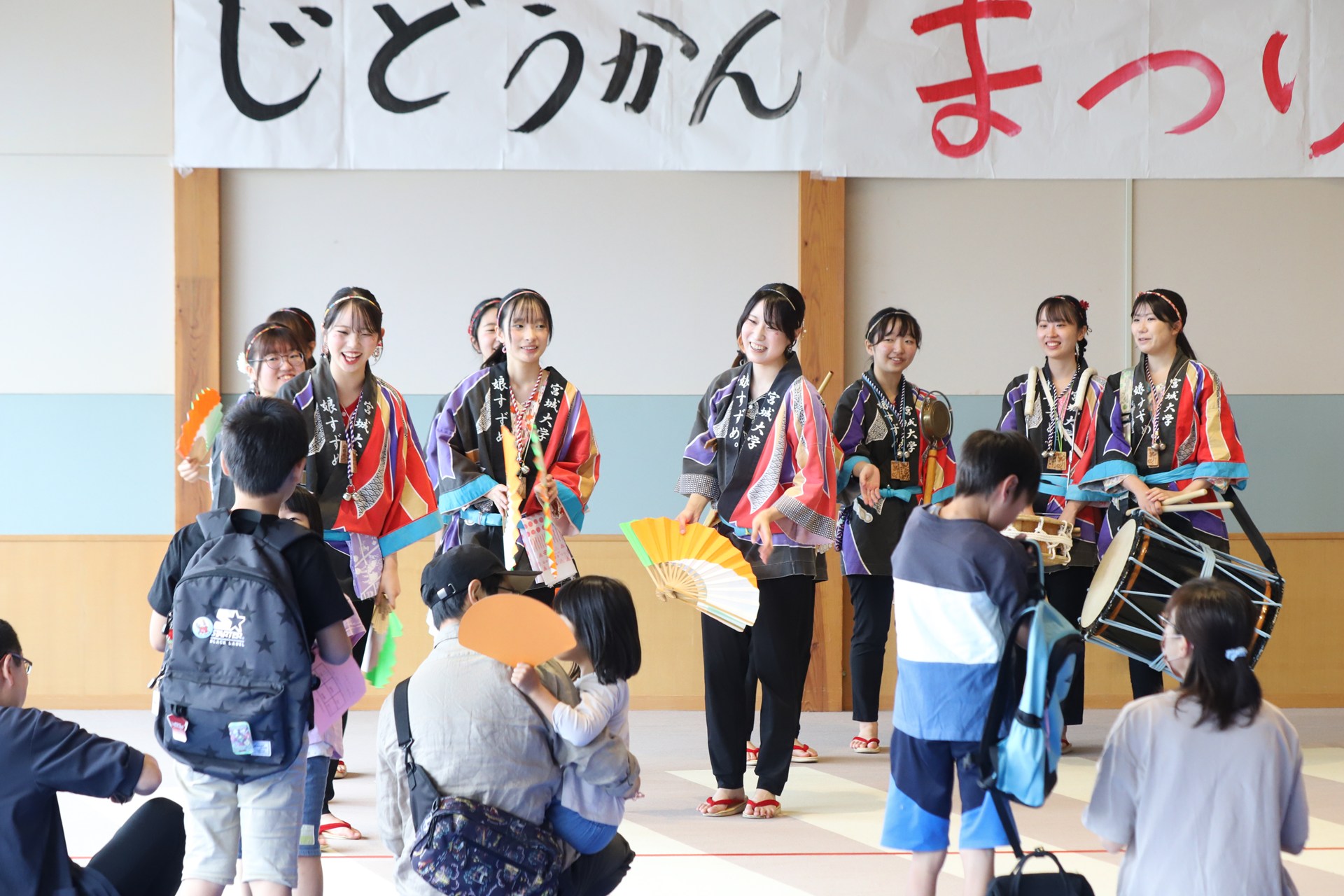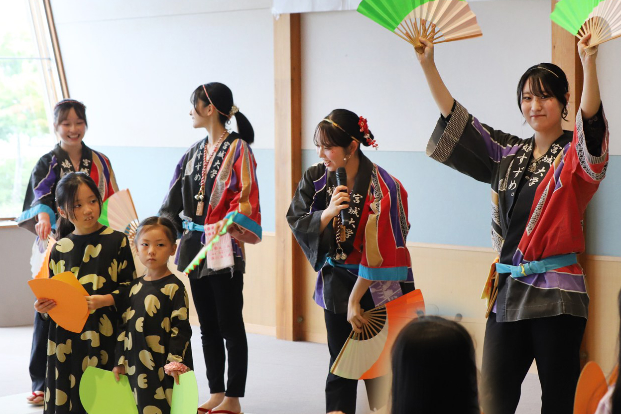 今回ワークショップMCを担当した「娘すずめ。」の振付師、小西有花さん(地域創生学類3年生)は「子どもたちが主体となって進行する、温かい雰囲気のお祭りでした。演舞やワークショップを通して、地域の皆さんと笑顔で交流できたことを嬉しく思います。館長の方からも『普段は賑やかな子どもたちの真剣なまなざしが印象的だった』とのお言葉をいただきました。大和町とおまつりを通した交流を続けていければと思います!」とコメントしています。