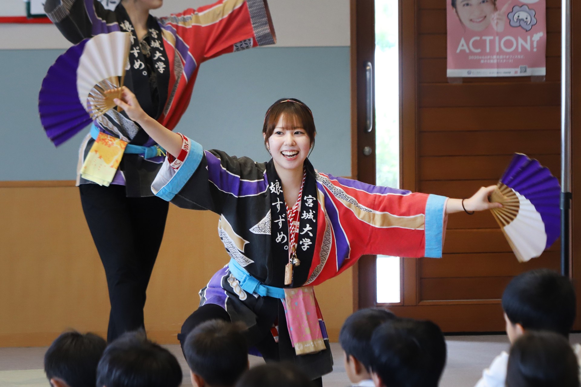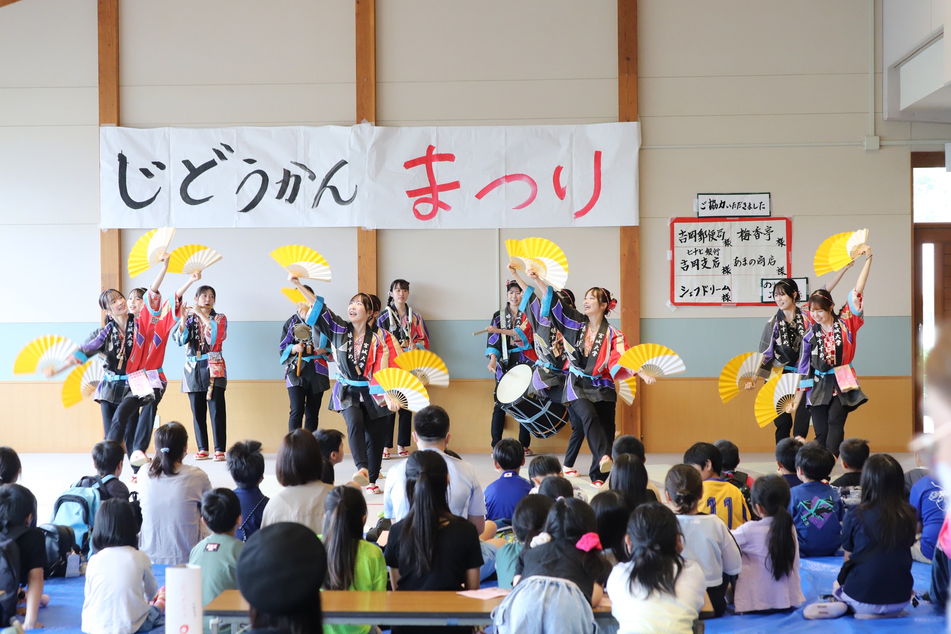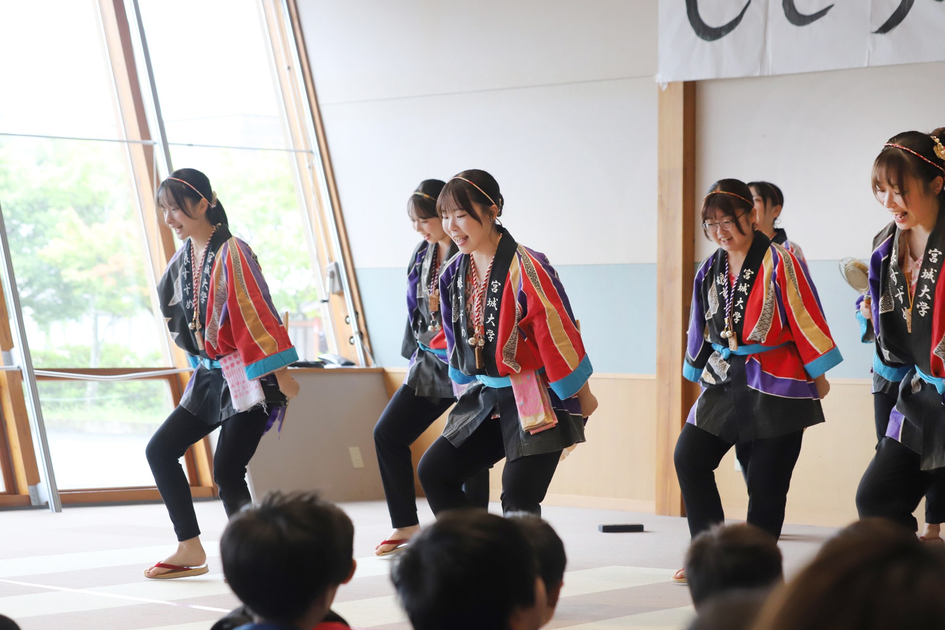 今回ワークショップMCを担当した「娘すずめ。」の振付師、小西有花さん(地域創生学類3年生)は「子どもたちが主体となって進行する、温かい雰囲気のお祭りでした。演舞やワークショップを通して、地域の皆さんと笑顔で交流できたことを嬉しく思います。館長の方からも『普段は賑やかな子どもたちの真剣なまなざしが印象的だった』とのお言葉をいただきました。大和町とおまつりを通した交流を続けていければと思います!」とコメントしています。