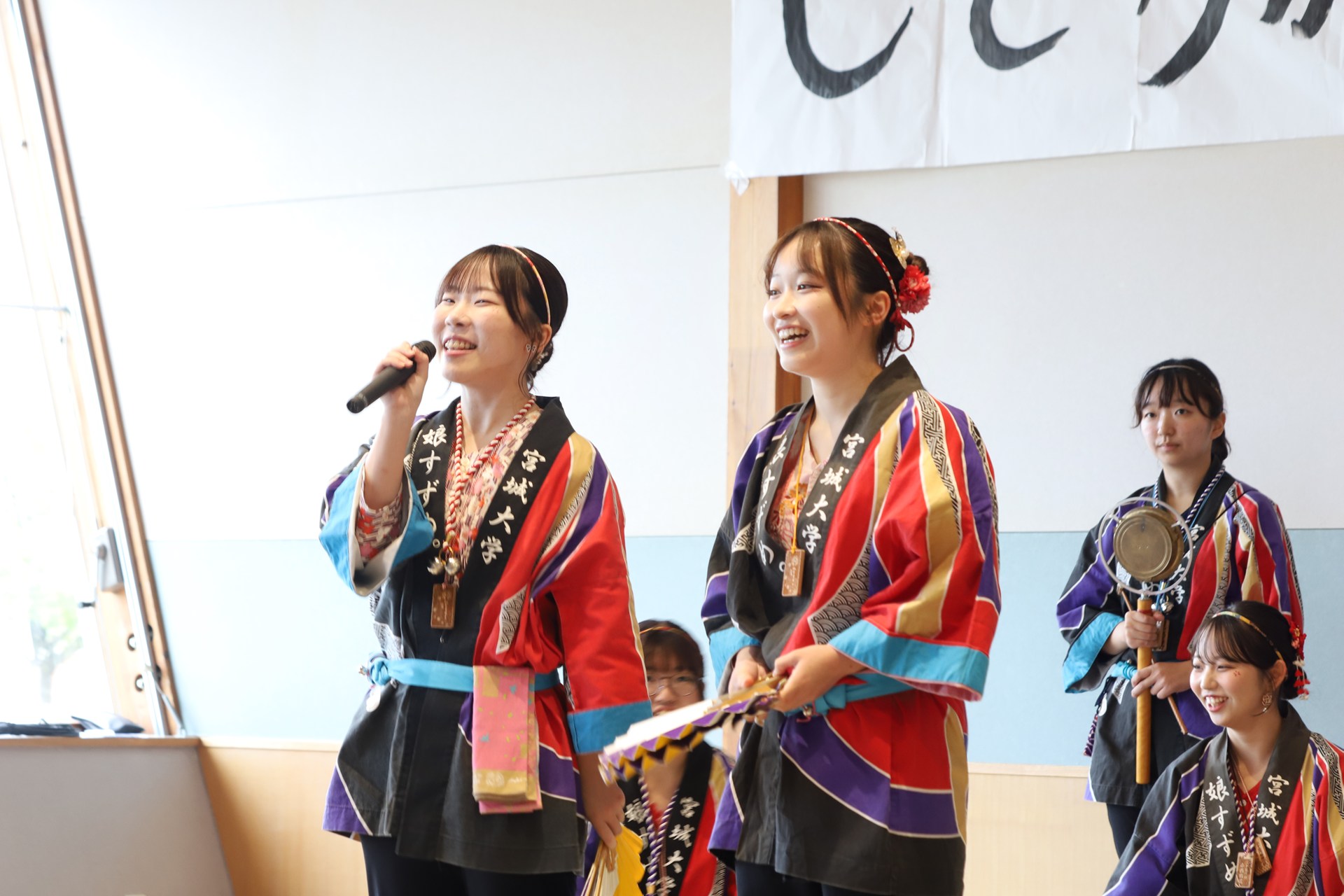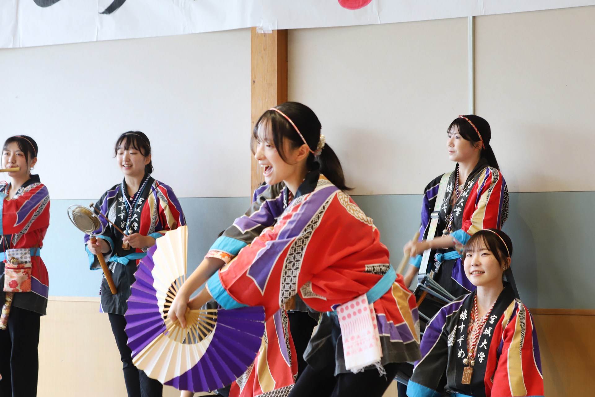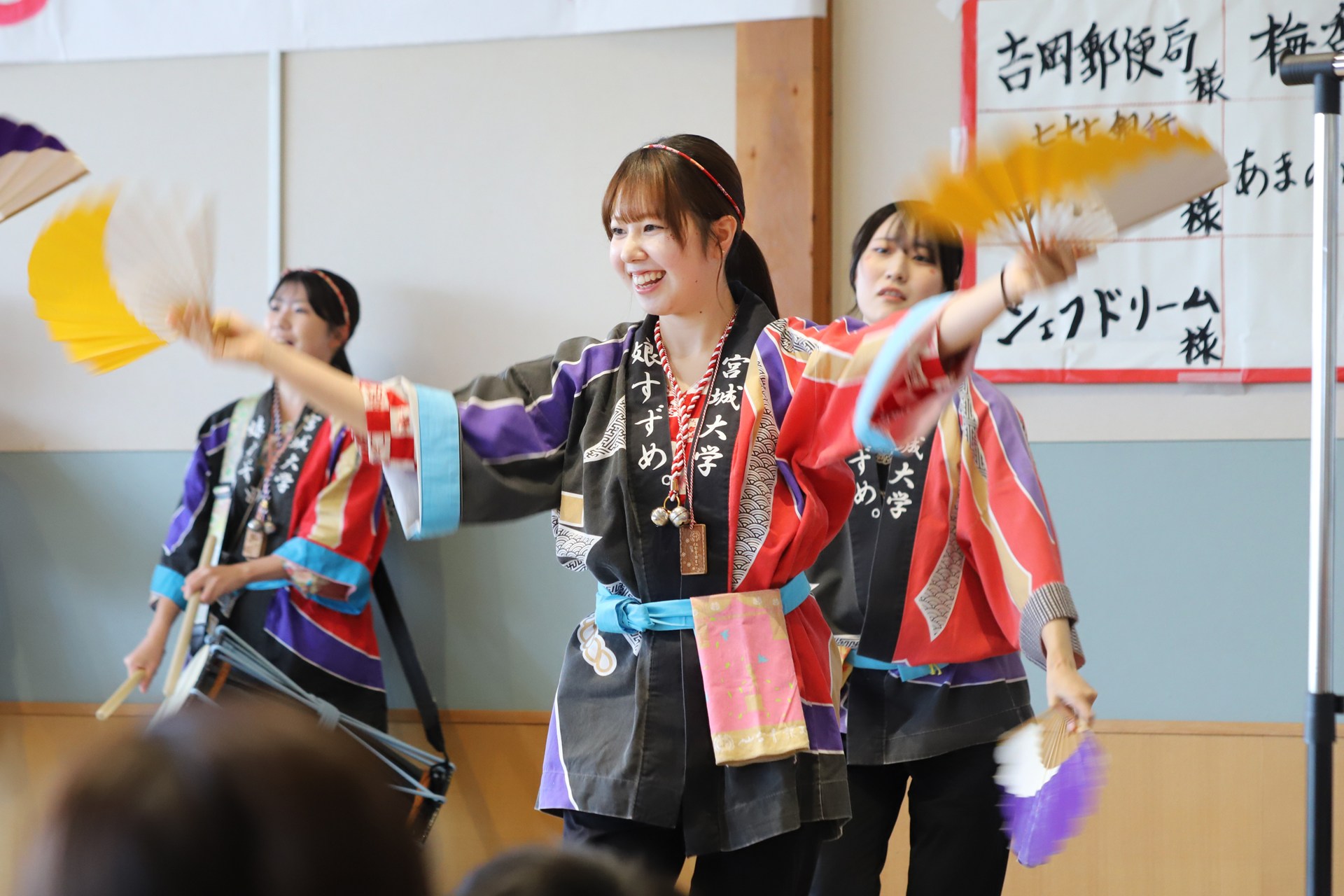 宮城大学のすずめ踊りサークル「娘すずめ。」が、9月20日に開催された「よしおかじどうかんまつり2025」に出演し、演舞披露とすずめ踊り体験WSを行いました。大和町は本学と連携協定を結んでおり、先日の石鳥谷まつりへの「娘すずめ。」出演に続く連携事業となります。ご来場いただいたみなさま「娘すずめ。」サークルへのたくさんのご声援ありがとうございました。