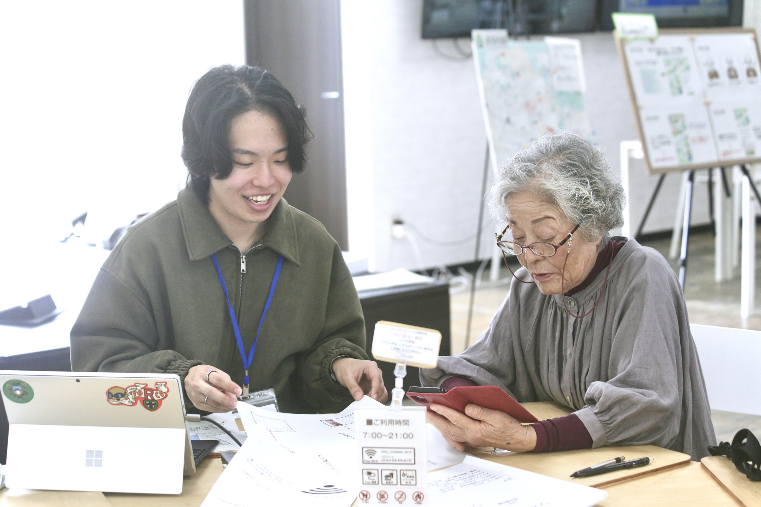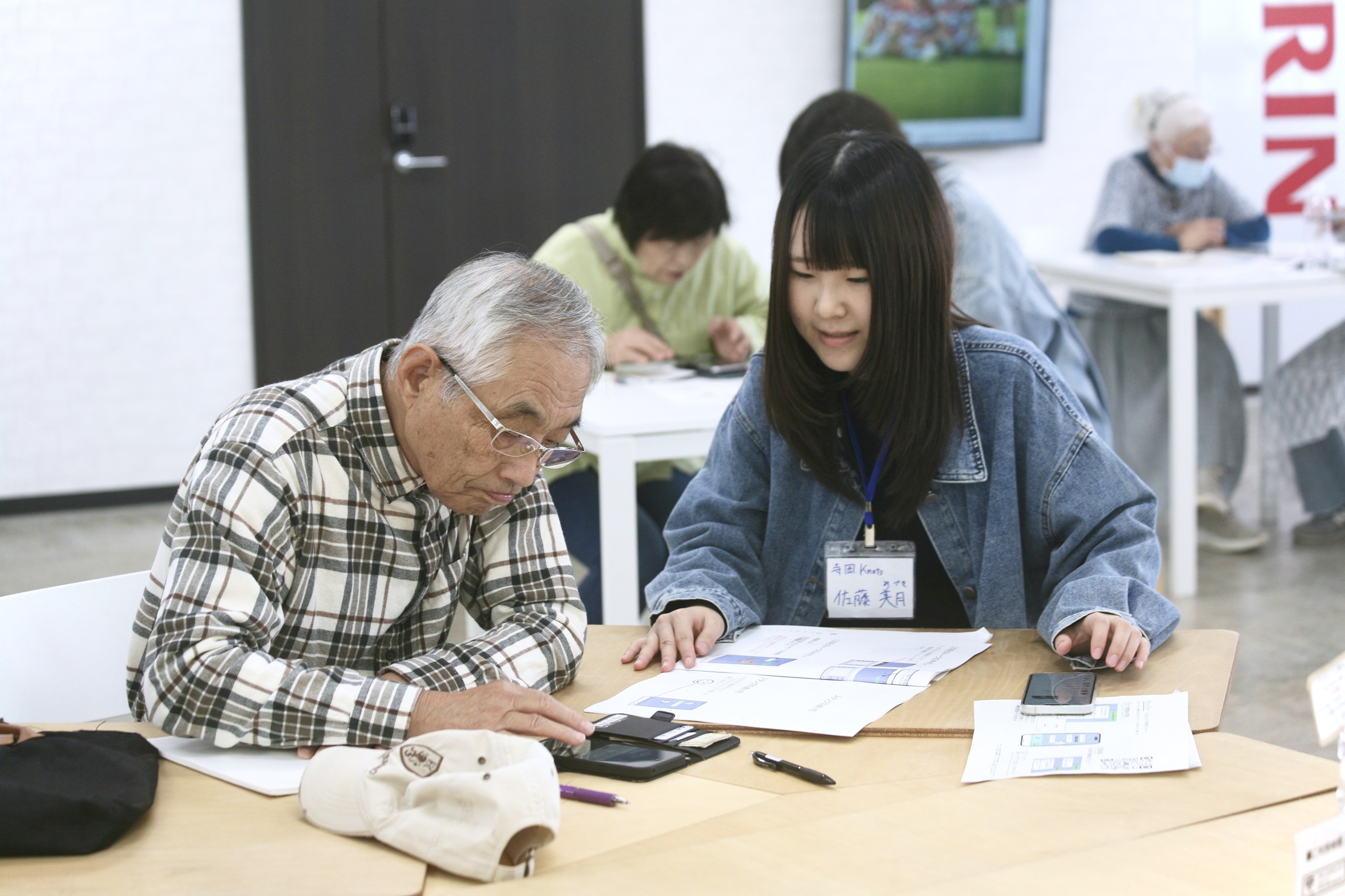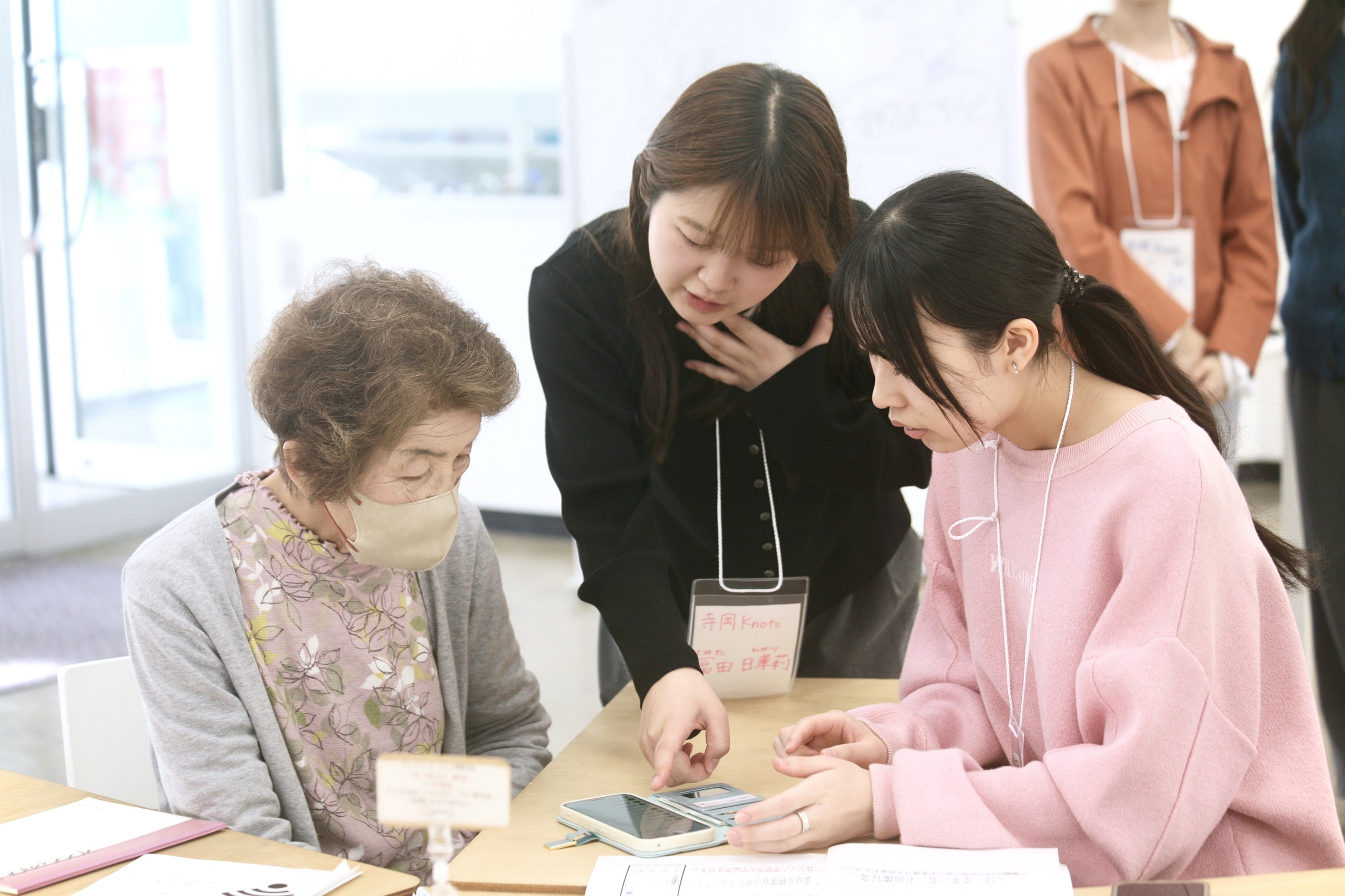 「寺岡Knots」は、多世代交流をテーマとした泉パークタウンの交流拠点です。2022年の施設オープンより、三菱地所と宮城大学でワーキングチームを結成し、地域の方々と多世代交流企画に取り組んでいます。10月18日、宮城大学生の企画により、地域の高齢者を対象とした「学生と学ぶ!!スマホ教室 LINEの使い方講座(4)」を開催しました。これまでの2024年7月・11月・2025年6月の開催に続く、第4回目の取り組みです。