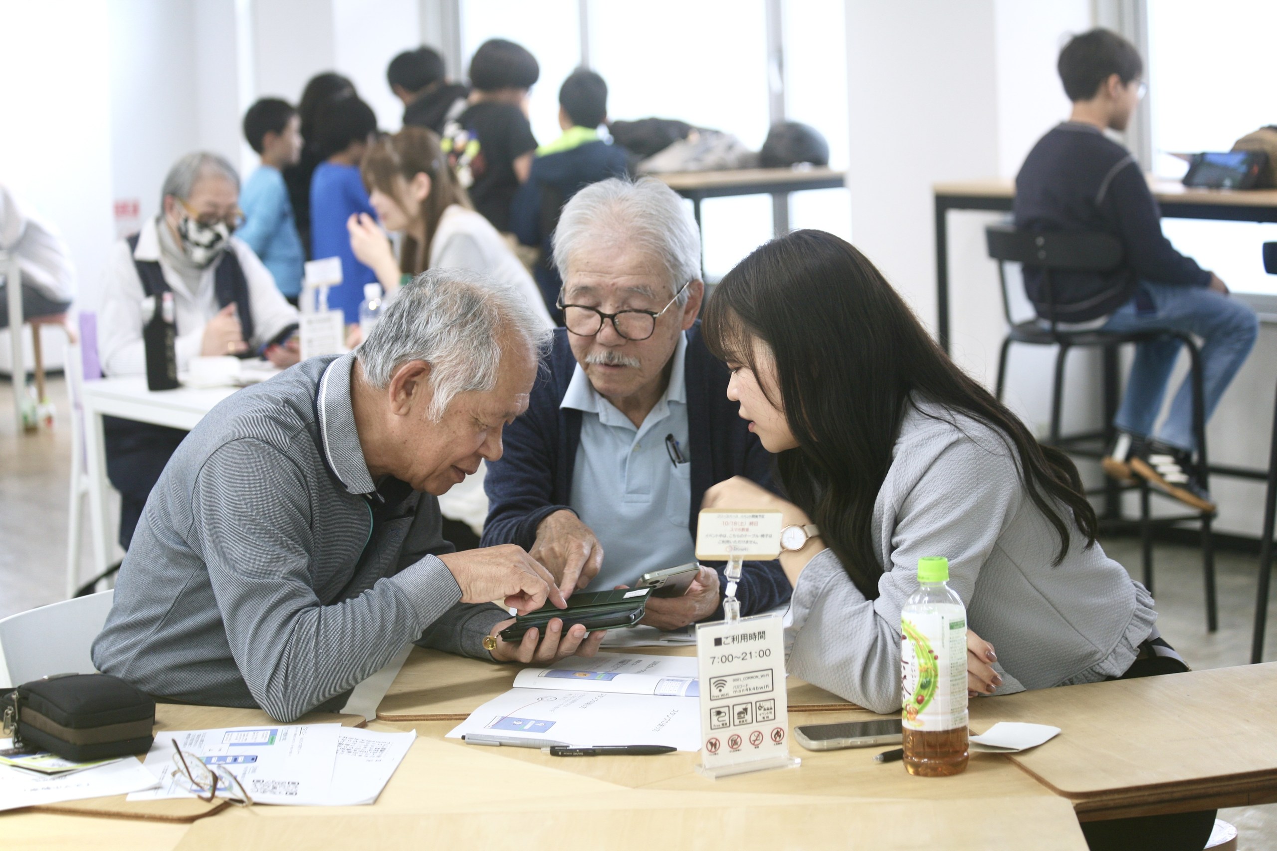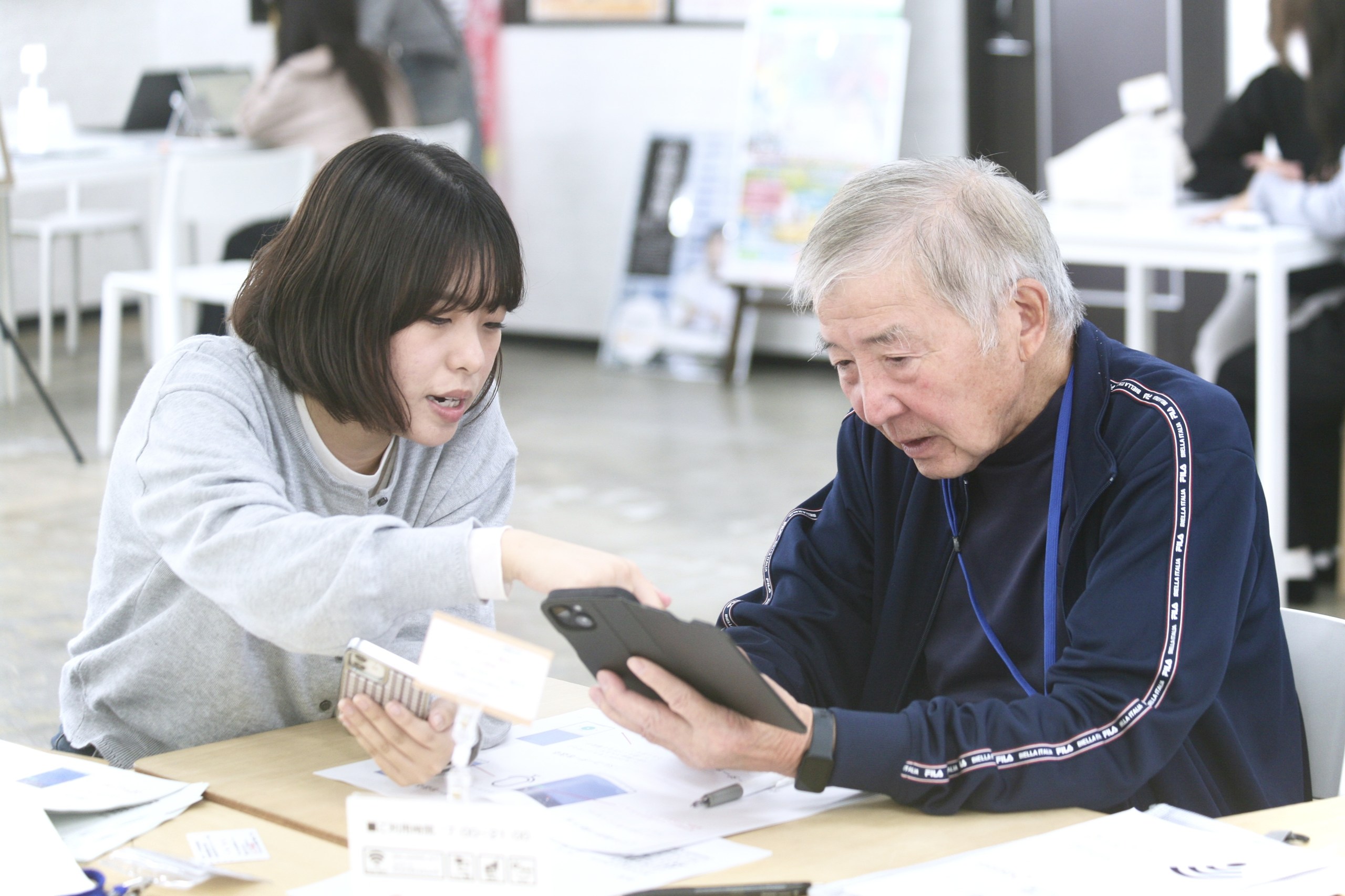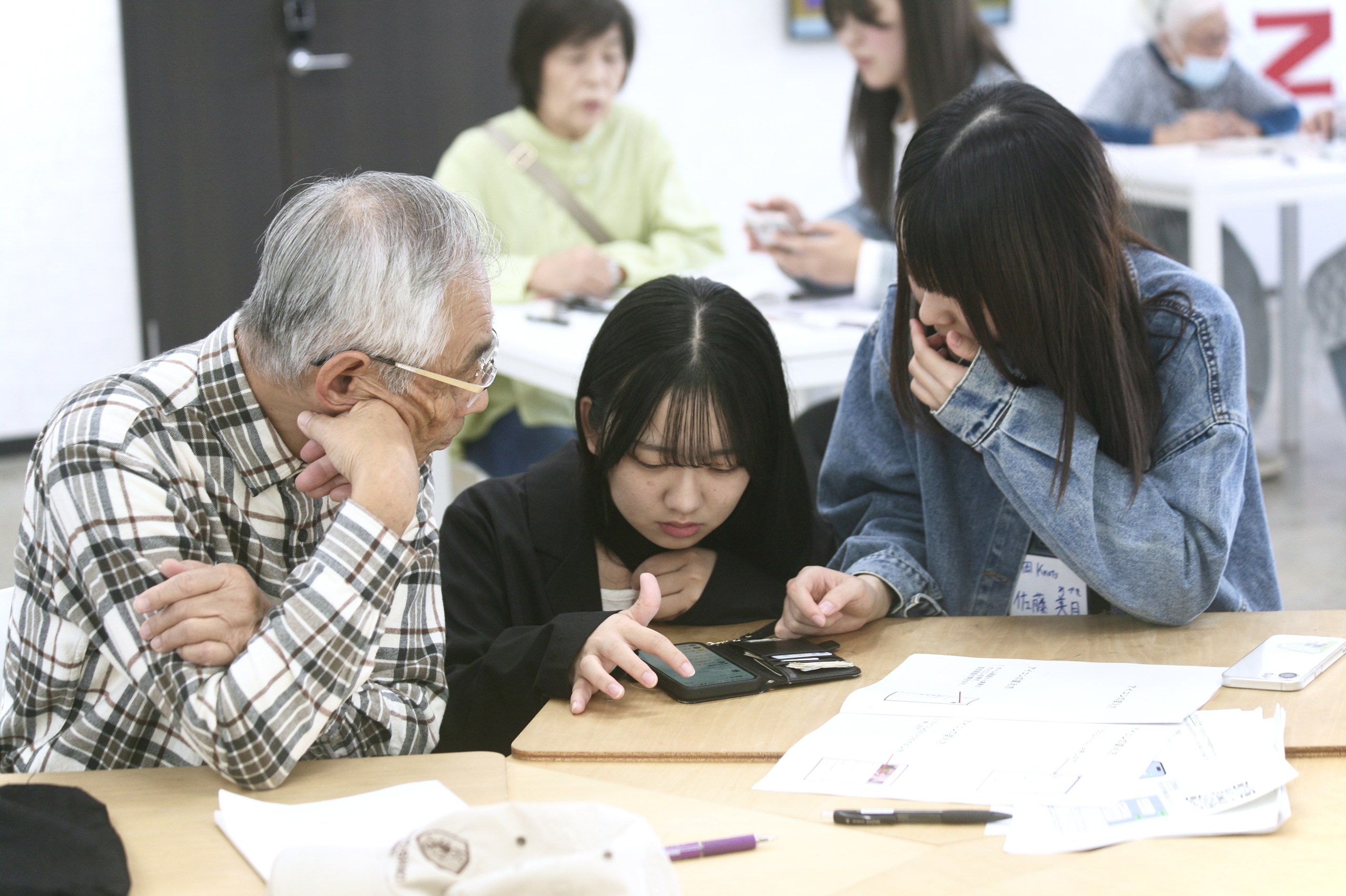 「寺岡Knots」は、多世代交流をテーマとした泉パークタウンの交流拠点です。2022年の施設オープンより、三菱地所と宮城大学でワーキングチームを結成し、地域の方々と多世代交流企画に取り組んでいます。10月18日、宮城大学生の企画により、地域の高齢者を対象とした「学生と学ぶ!!スマホ教室 LINEの使い方講座(4)」を開催しました。これまでの2024年7月・11月・2025年6月の開催に続く、第4回目の取り組みです。
