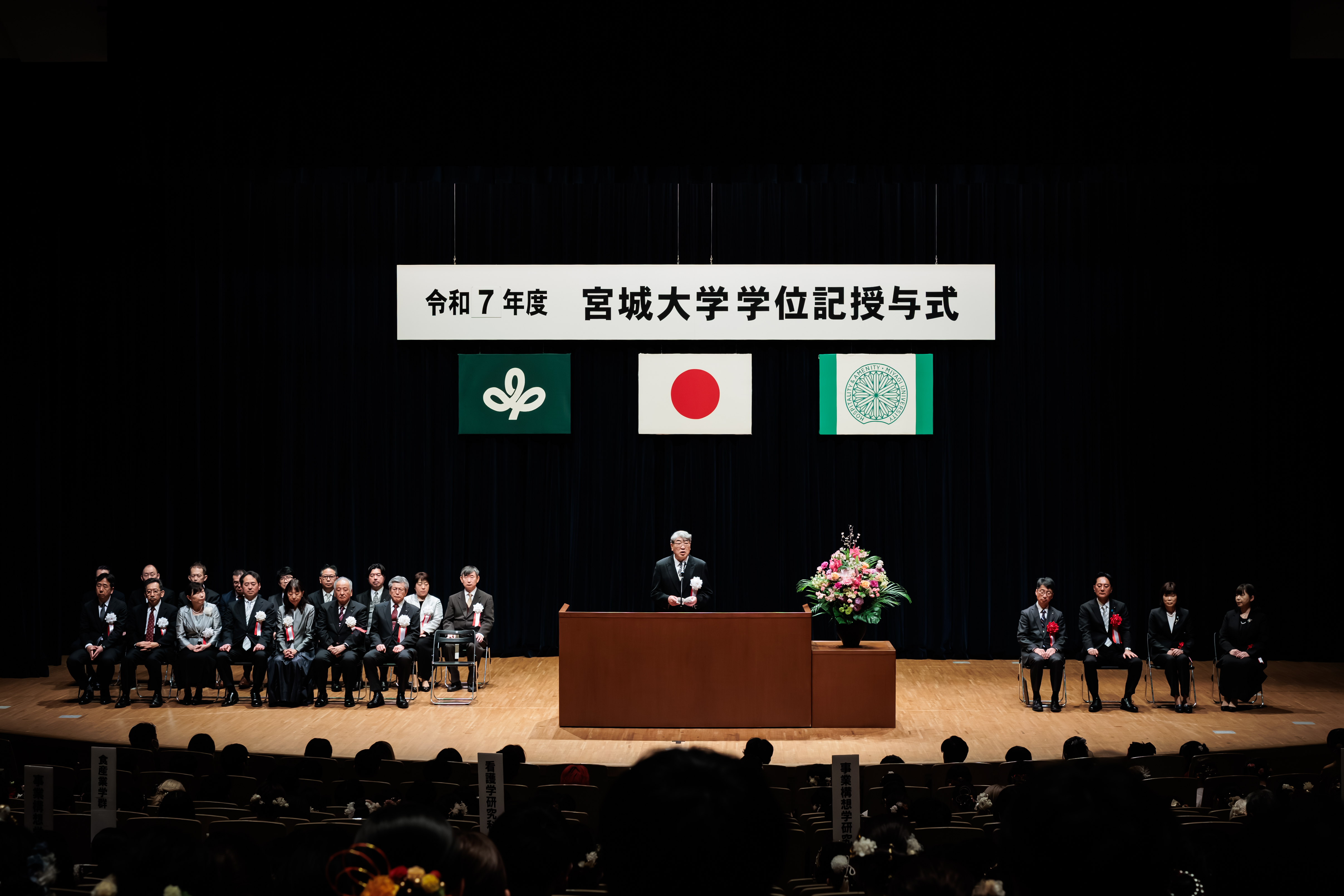 本日、令和7年度宮城大学学位記(がくいき)授与式が厳粛に挙行されますことを、心からお慶び申し上げます。