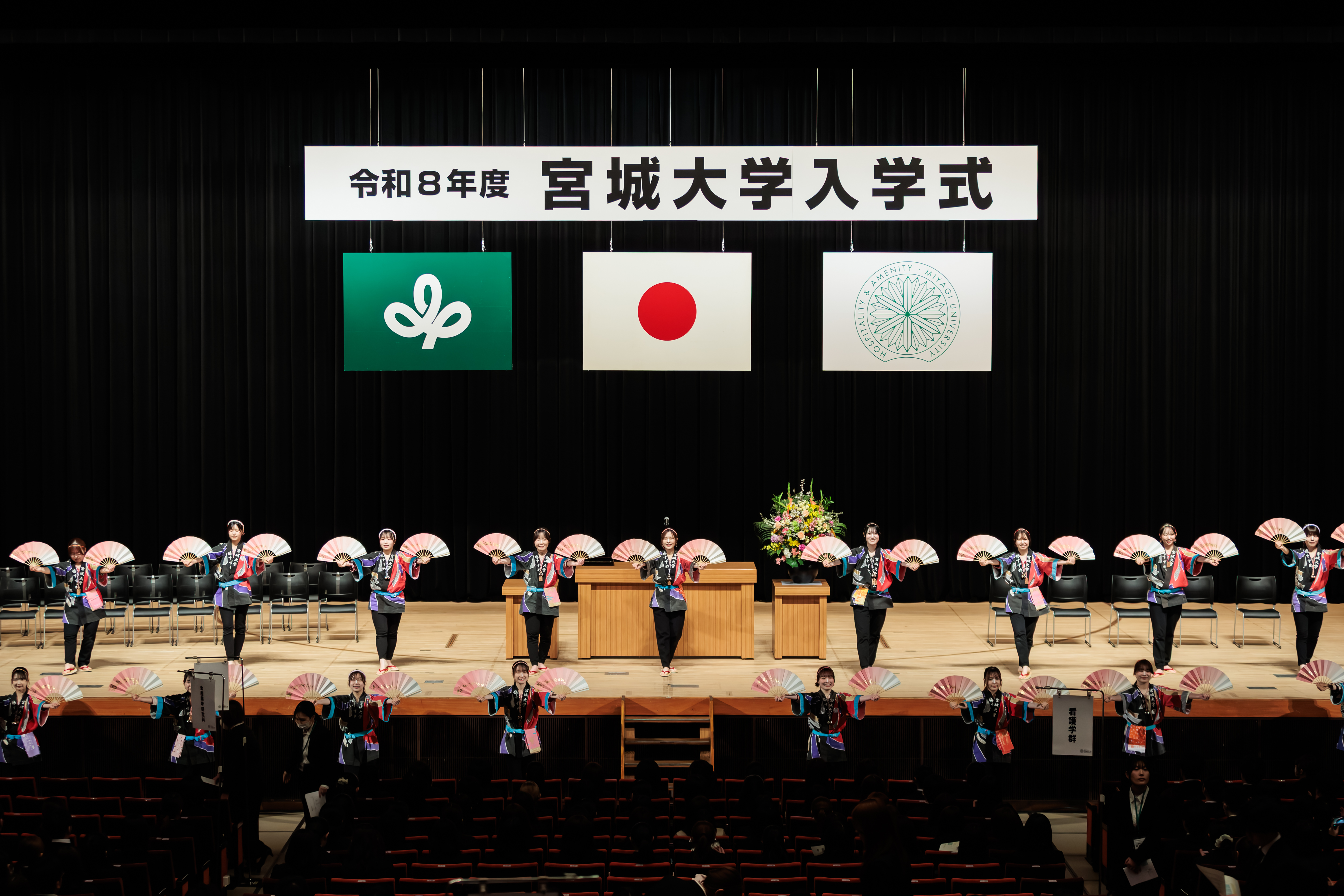 2026年度(令和8年度)宮城大学入学式を4月3日(金)、東京エレクトロンホール宮城大ホールにて行いました。今年度の入学生は看護学群97名、事業構想学群213名、食産業学群127名、看護学研究科6名、事業構想学研究科13名、食産業学研究科8名の計464名でした。