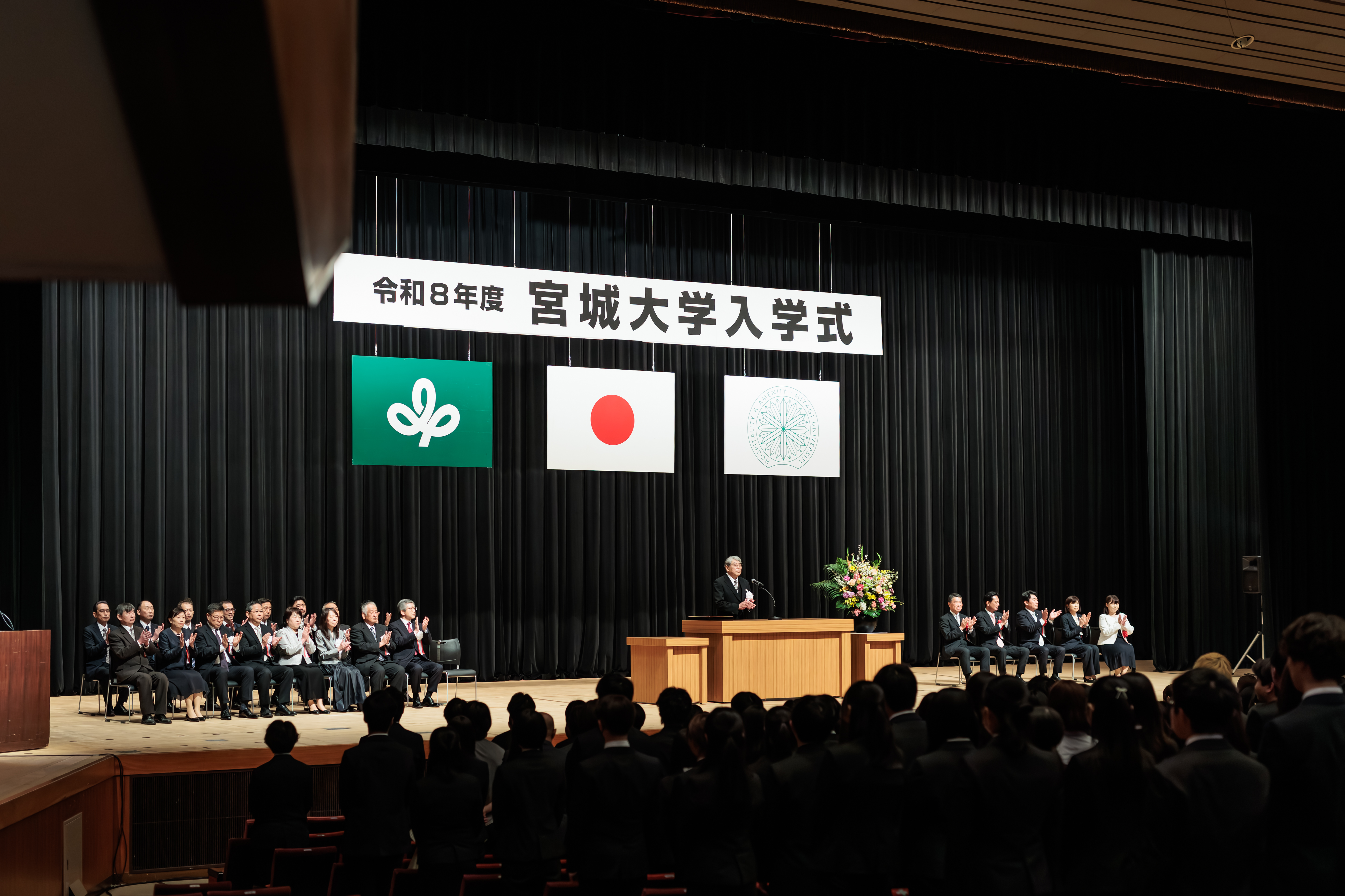 本日、ここに学群新入生437名、そして大学院研究科への進学者、入学者27名の皆さんを本学に迎えることができたことは、私たちの大きな喜びです 。宮城大学を代表して、皆さんのご入学を心より歓迎いたします。