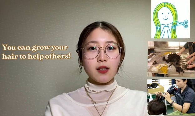 看護学群1年生による「You can grow your hair to help others!」では、ヘアドネーションをテーマに、必要な髪の長さやウィッグが作られる工程などが紹介されました。また、食産業学群4年生による「What I want you tell you as a 4th grade student」では、自身の経験や「HONDA」の創業者である本田宗一郎などの著名人の言葉を交えながら、大学生のうちに失敗を恐れずに挑戦することの重要さについて紹介されました。