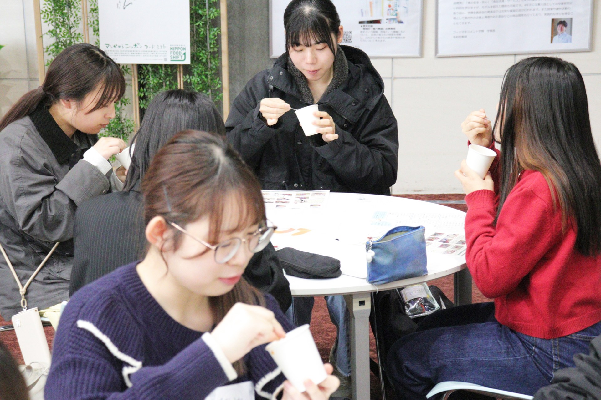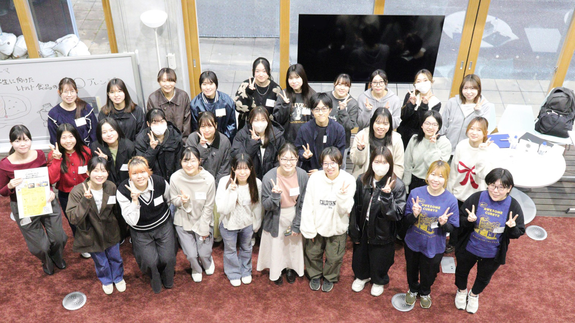 この度は、防災イベントにお招きいただきありがとうございました。レトルト食品を通して防災やローリングストックの知識や考え方を、大変熱心な学生の皆さまにお伝えできたことを嬉しく思います。ワークショップでは、節約や時短などのテーマに沿ってアレンジレシピを考案いただきました。「一人暮らしの学生が余らせがちな冷凍ごはん」「豆腐で節約」といった、学生さんならではの視点がとてもユニークで新鮮でした。全員投票で見事1位に輝いた「コンポタドリア」も、普段脇役のスープを主役メニューへ生まれ変わらせた素晴らしいアイディアでした。皆さんからも気さくに話しかけていただき、普段からニシキヤキッチン店舗をご利用の方がいらっしゃったことも大変嬉しかったです。ブランドをより深く知っていただく貴重な機会をありがとうございます。今回の学びが「もしも」の備えに繋がり、さらにはSNSなどを通じて、若い世代に広く伝わっていくことを願っております。