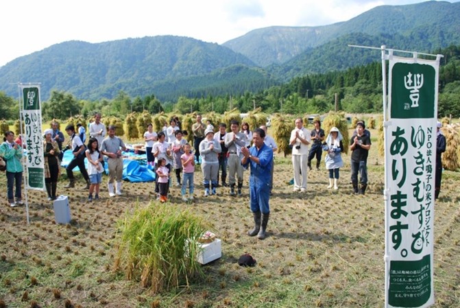 宮城県大崎市の鳴子温泉地域で実践する、地域の農と食、暮らしを守るプロジェクトで、今年で20年目を迎えています。鳴子温泉地域は約1200年前開湯の温泉場で、国内の泉質10種類のうち鳴子には7種類の多様な泉質があります。景気の低迷などにより観光客はこれまでの半分の年間200万人にまで減少していました。また、県境の山間地域でもあり、農業をやめる農家が増え、耕作放棄地が増加し、鳴子温泉の農村風景も失われようとしていました。そこで、山間地の農をあきらめず、鳴子の田んぼや農村風景、暮らしを守るため、地域が一丸となり立ち上げた取り組みが鳴子の米プロジェクトです。 鳴子の米プロジェクトでは、つくり手である農家と食べ手である消費者が向き合い、農と食の大切さを共有できるよう様々な活動に取り組んできました。