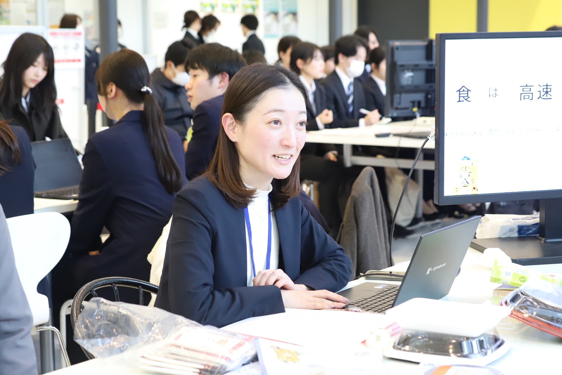 今回のイベントは、30分×3部構成で食品系の企業等計19社が出展。合計115名の学生が参加しました。企業・団体ごとにブースを設置し、参加学生はあらかじめ登録した企業等ブースに着席し、各企業・団体ごとの概要・業務内容の紹介・やりがい等について説明を受けました。