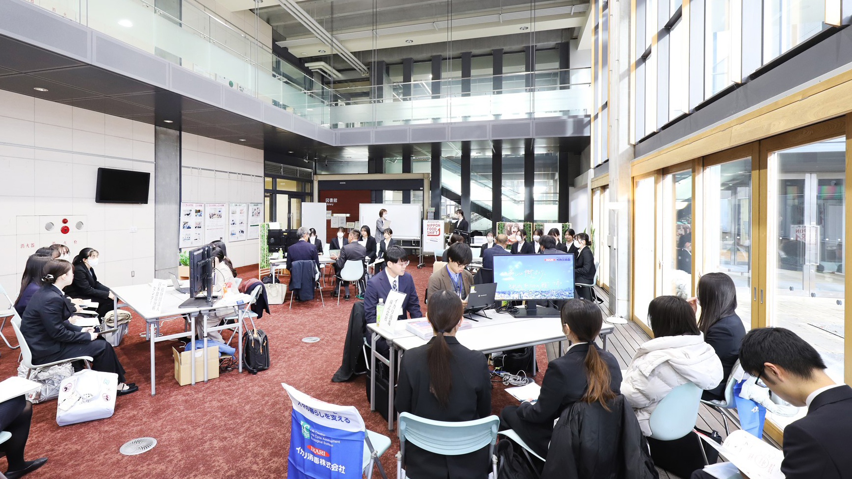 キャリア・インターンシップセンターでは、企業等の業種や業界に関する知識を深めるとともに今後の就職活動に対する意識啓発と意欲向上を図るため、合同業界研究会を大和・太白キャンパスでそれぞれ開催しています。11月19日、太白キャンパスのカフェテリア・ディスカバリーコモンズを会場として、太白キャンパス合同業界研究会を実施しましたのでお知らせいたします。