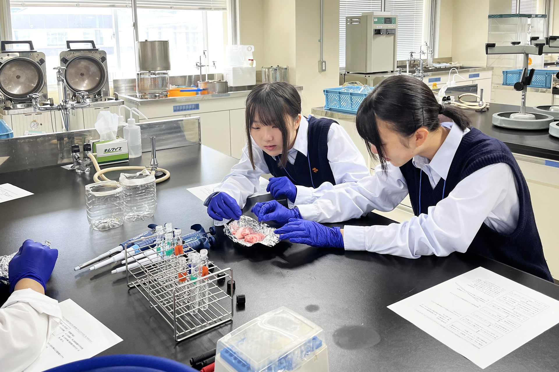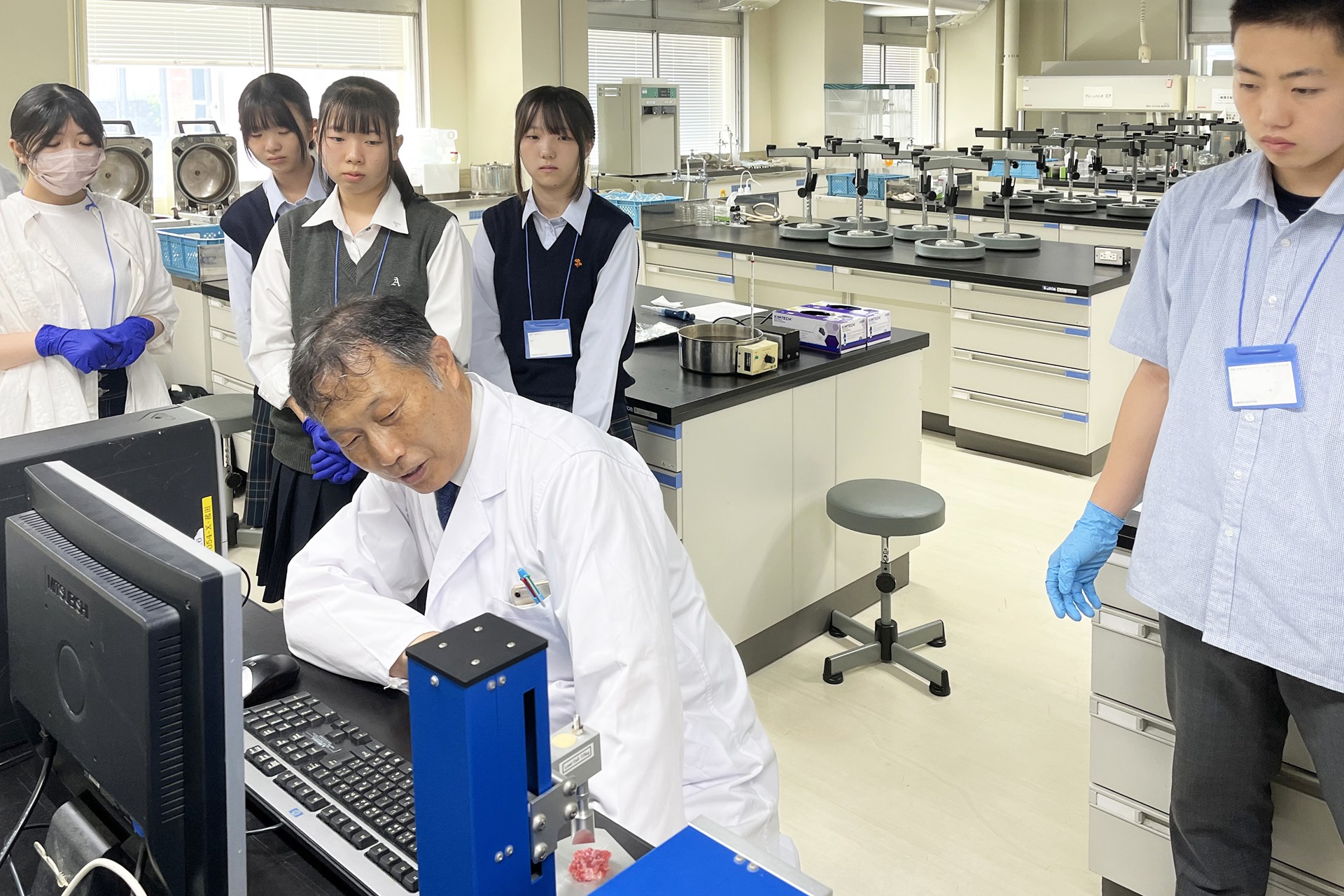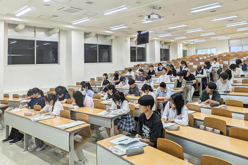 基盤教育の受講後は、参加高校生らは学群、学類ともに5つのコースに分かれ、「専門教育」の一端に触れました。