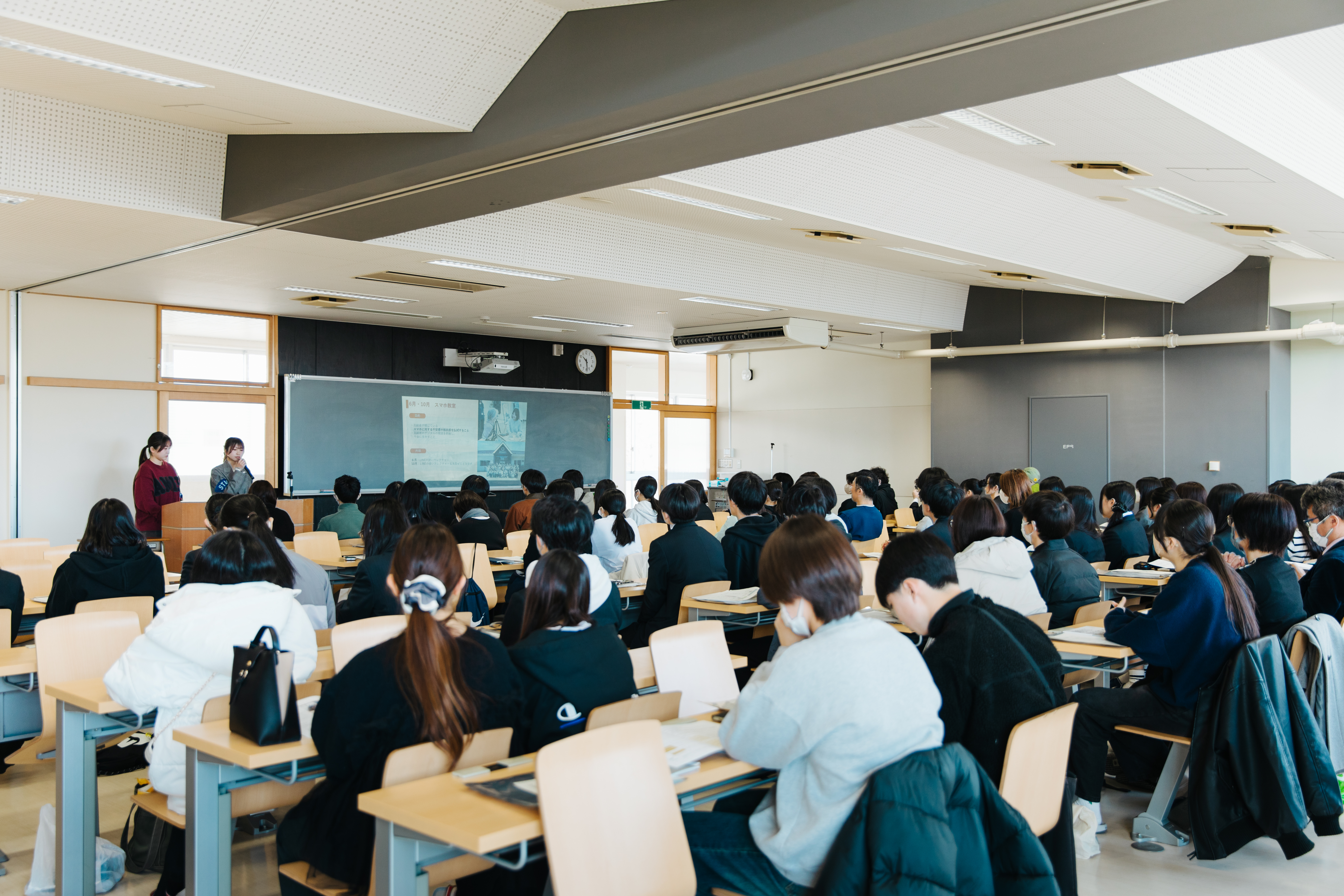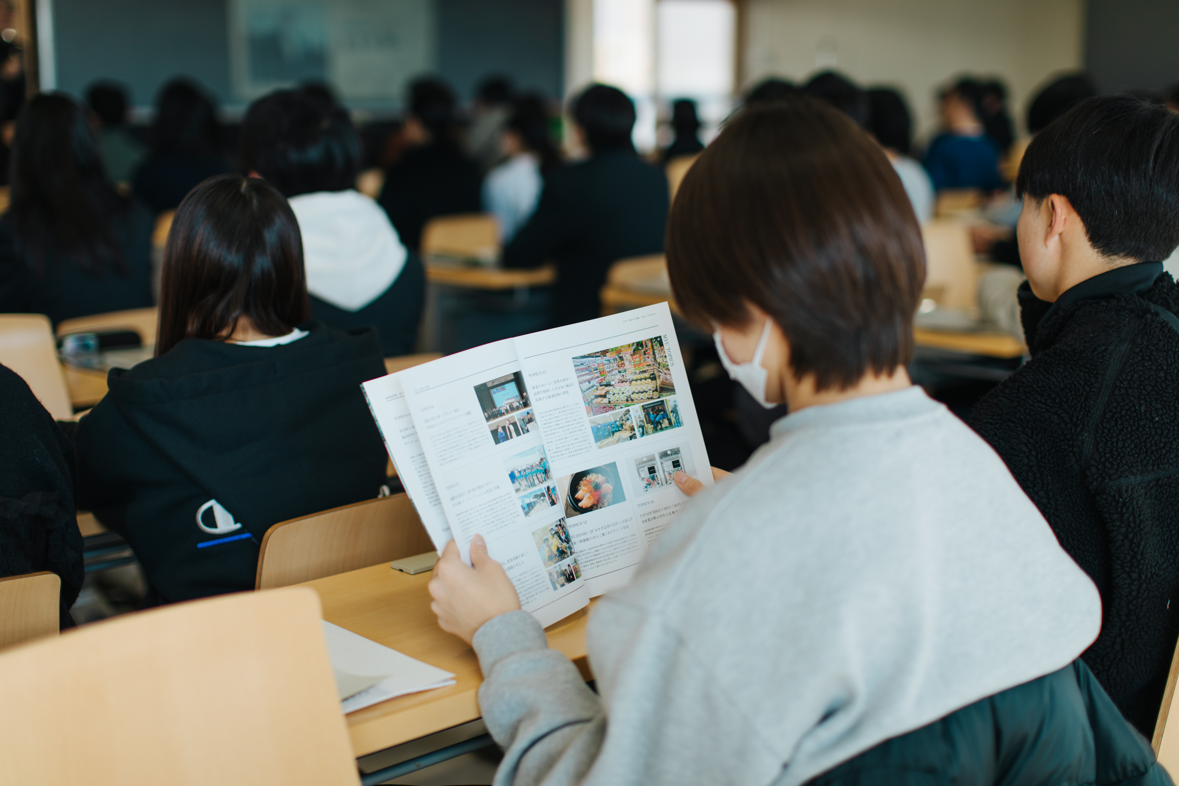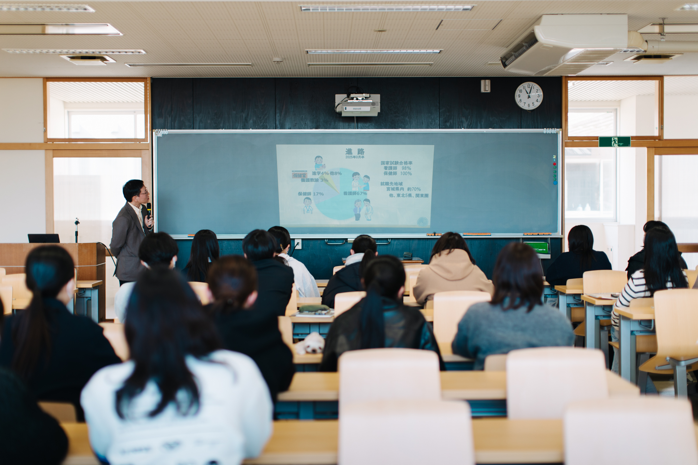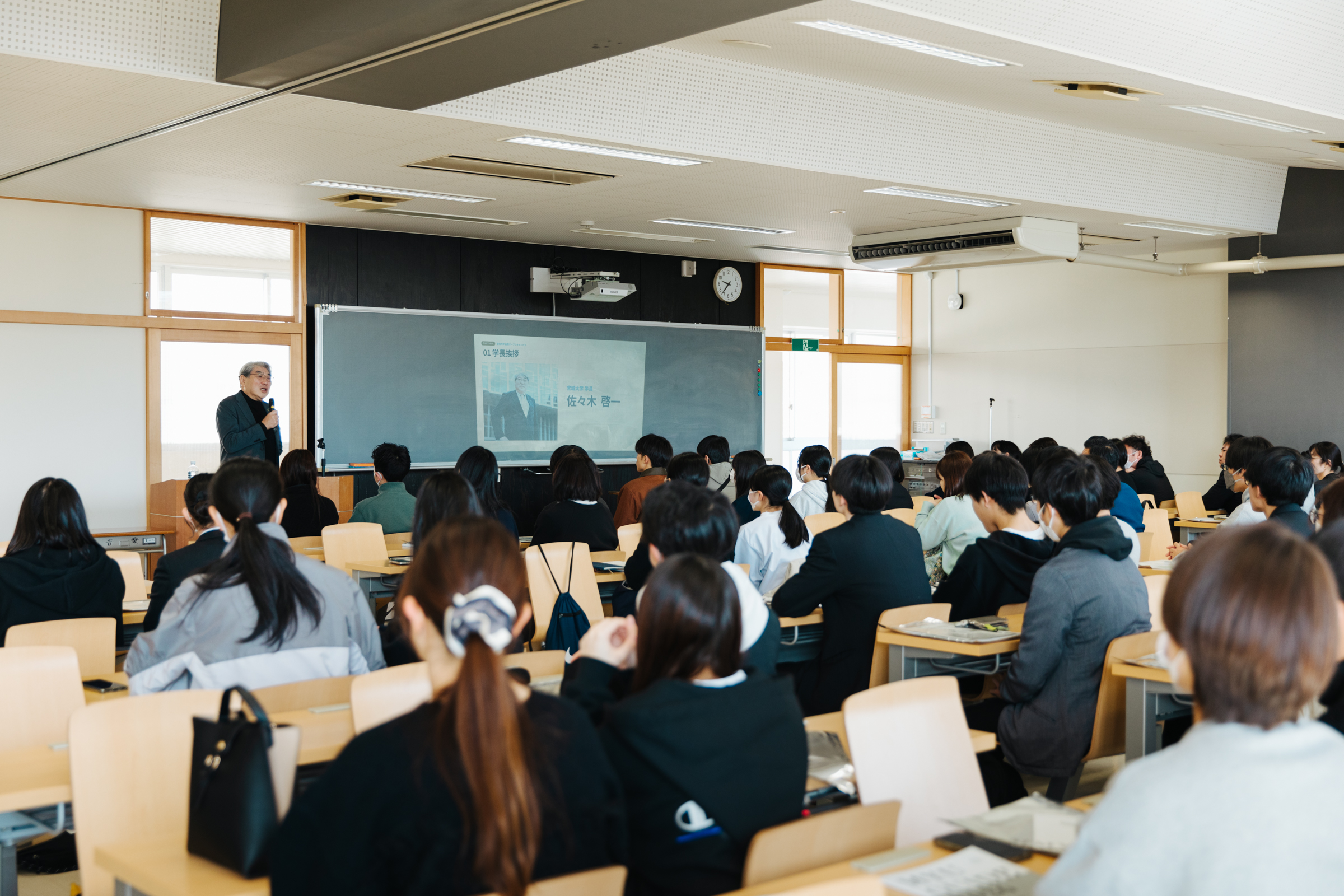 来場者は、最初に大学ガイダンスを受講し、宮城大学について理解を深めました。