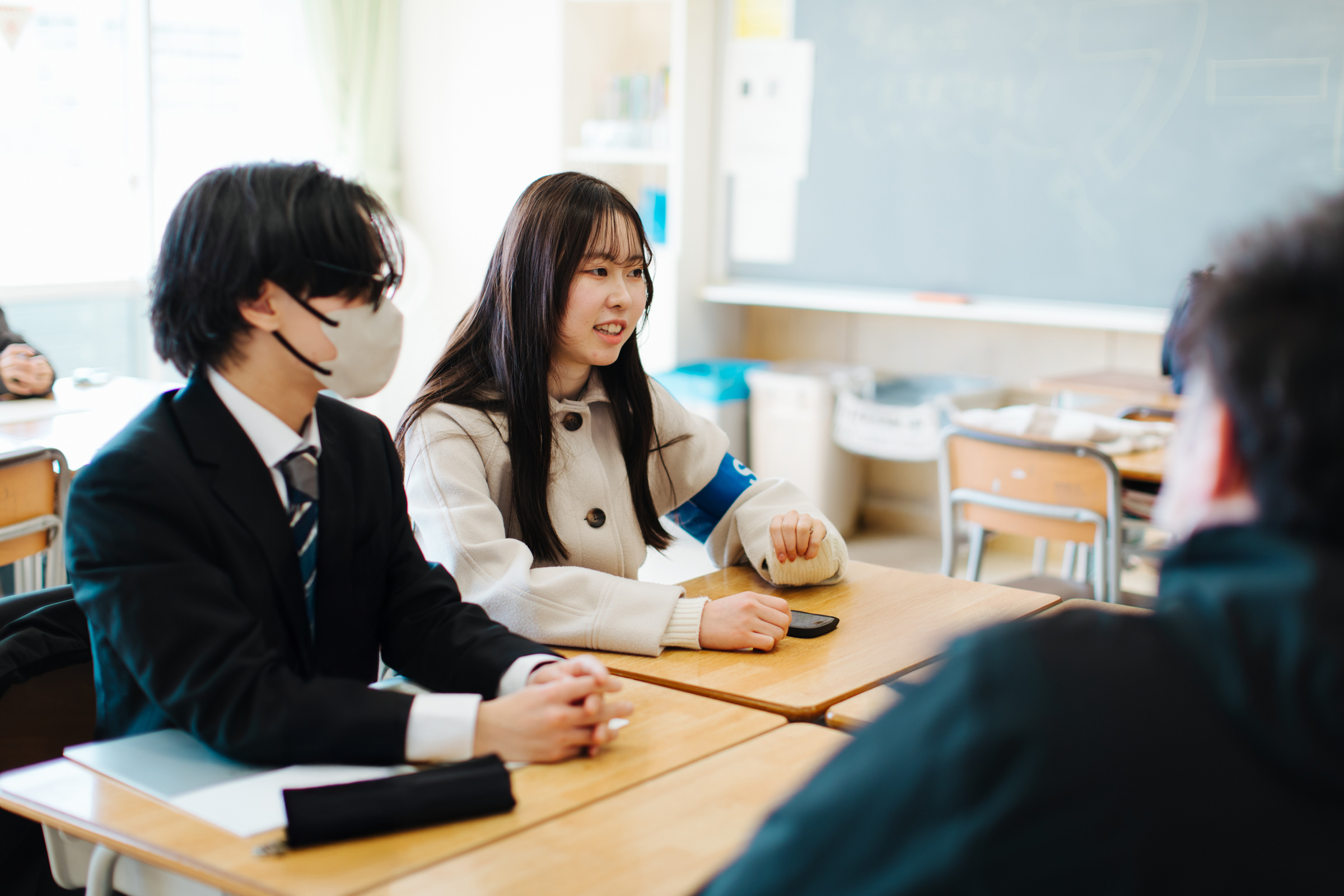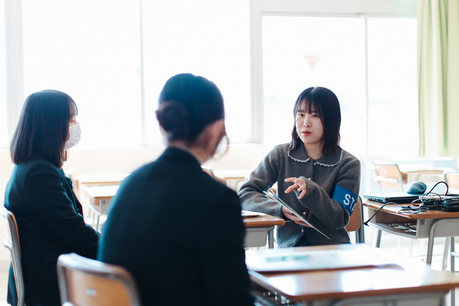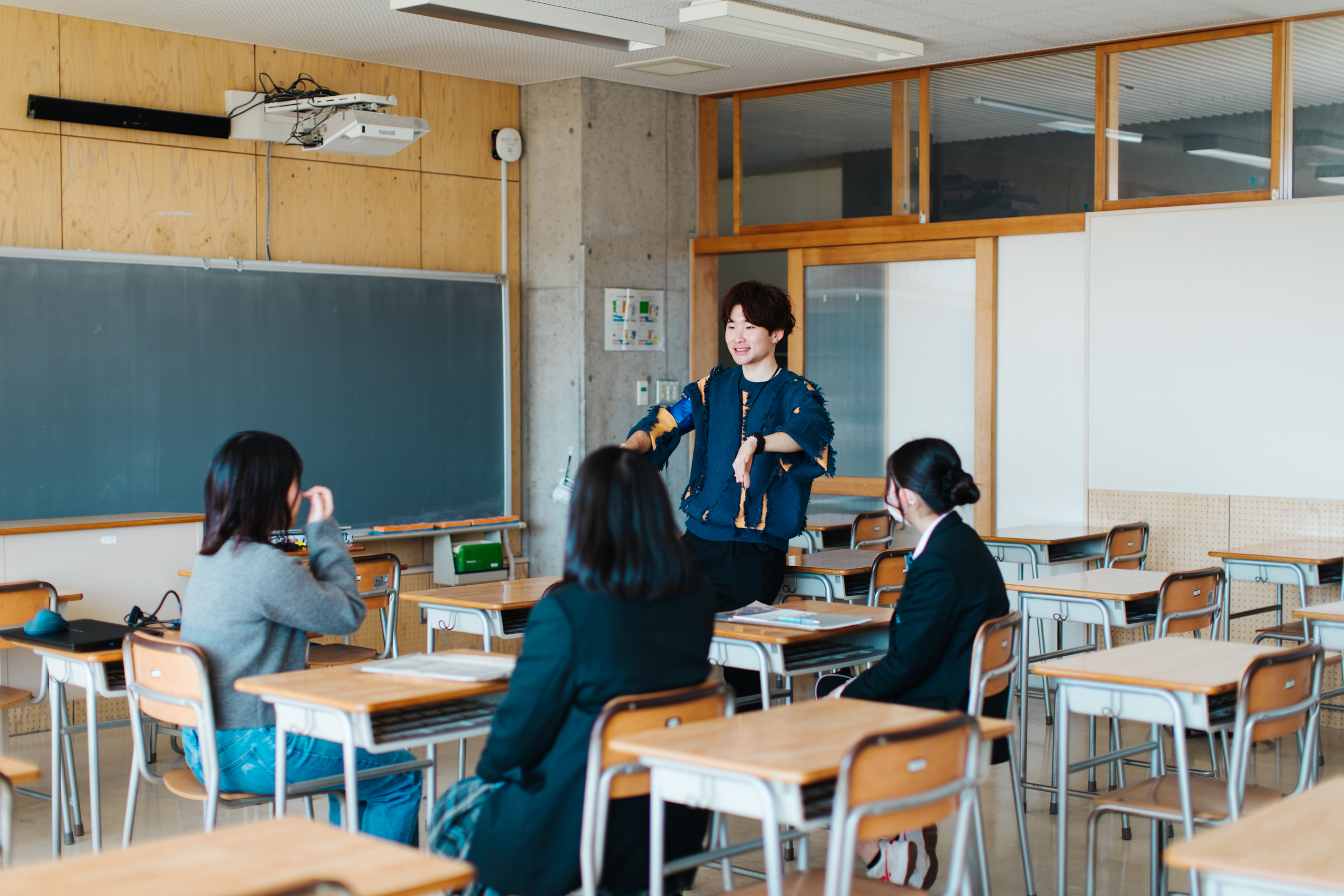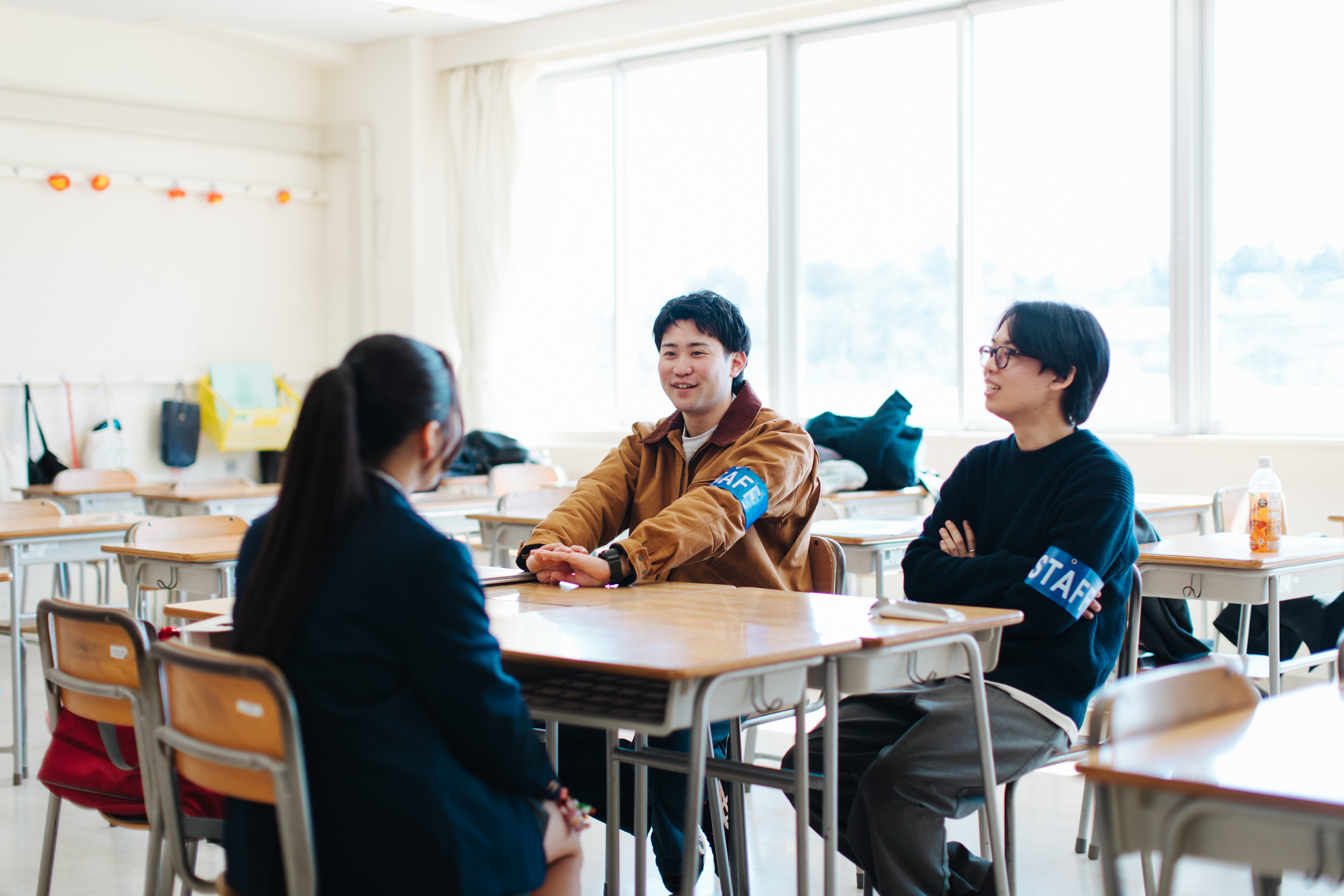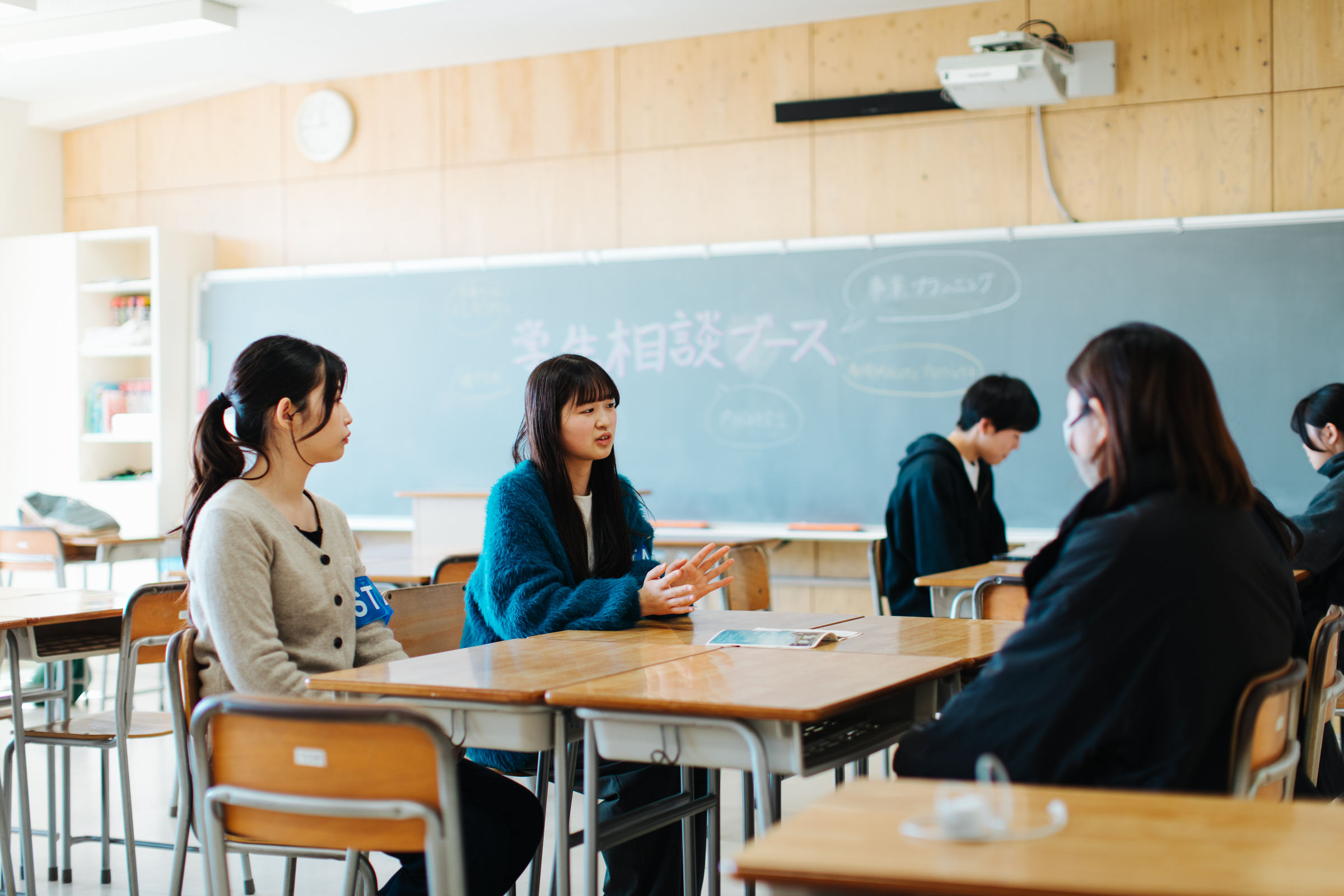 また、各学類所属の学生による相談ブースでは、来場者から受験勉強の相談を受けたり、自身の大学生活について紹介をしました。