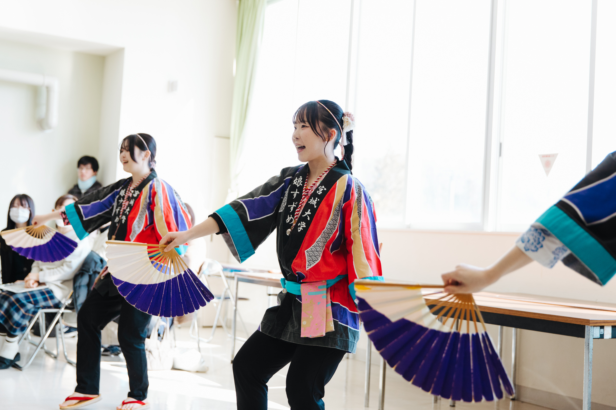 大学ガイダンスでは佐々木学長や高大連携推進室長の高山准教授から宮城大学に関する説明があったほか、サークル・学生団体紹介のパートでは大和キャンパス「娘すずめ。」「寺岡Knotsプロジェクト」、太白キャンパス「ボストンクラブ」「Partager(パルタジェ)」の所属学生自身がサークルや学生団体での活動について紹介を行いました。
