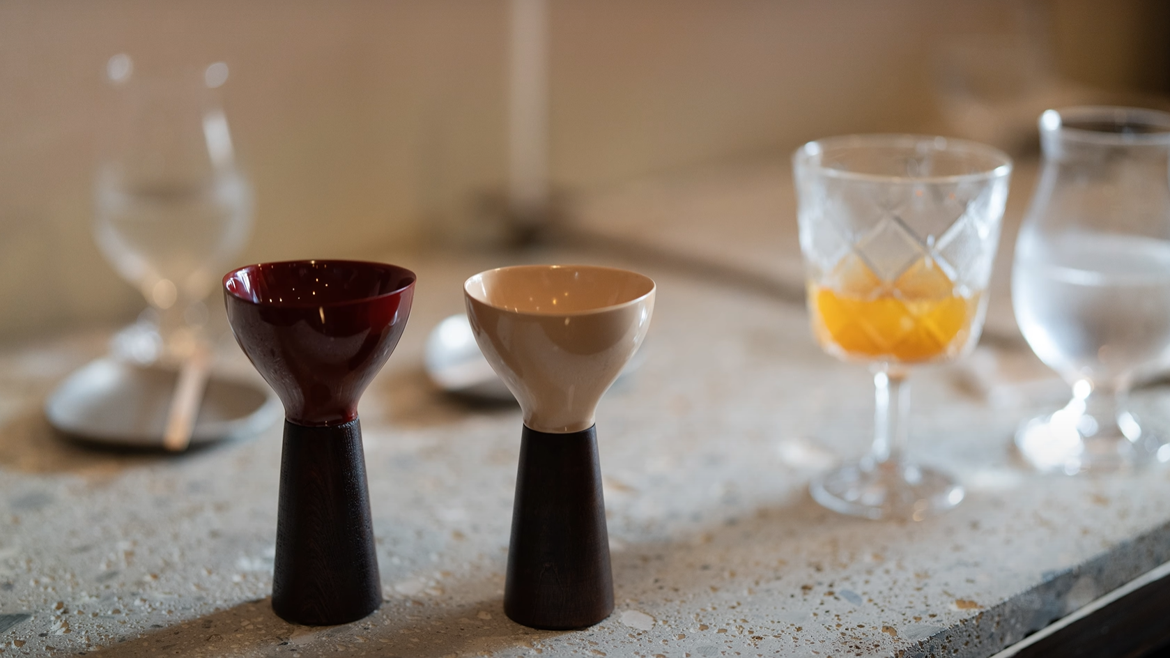 持ち手があることで、武具をつけた騎乗でも酒を溢さずに飲めるという特徴は、現代のテーブルでの食事や立食においても、安定して口まで運ぶことができる・高さがあることで「お酌」がしやすくなる・飲む動作自体を美しく見せると言った点で機能的です。「KANPAI」は、この馬上杯を「志をともにし、同じビジョンへと向かう仲間との器」と捉え、デザインのモチーフとしています。