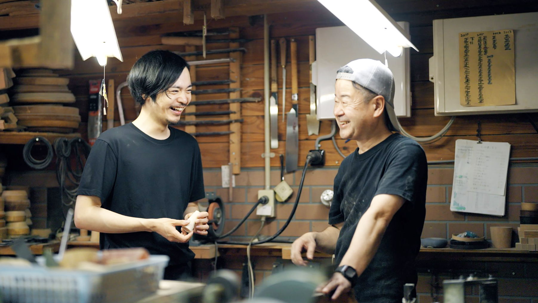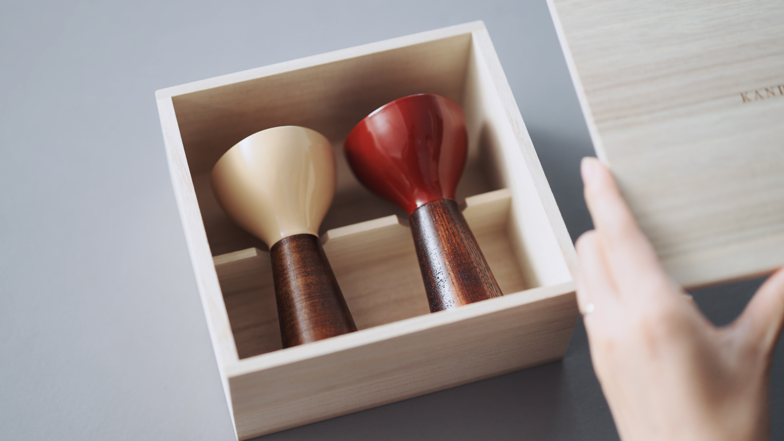 KANPAIは、これまでにない乾漆による構造と未利用材の活用であるため、デザイナーが木材の状況・材質をヒアリングし、実際に加工を行う木地/漆の職人たちと綿密なコミュニケーションを重ねることにより実現に至りました。サステナブルな素材と伝統素材が融合し、工芸技法と現代のテクノロジーを駆使してデザインされた酒器は、宮城大学の根幹となる「歴史・風土・地域資源・工芸・テクノロジー・食文化・他者を思いやる精神」といった要素が集約しています。