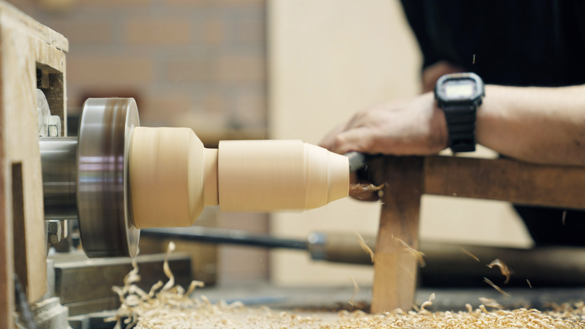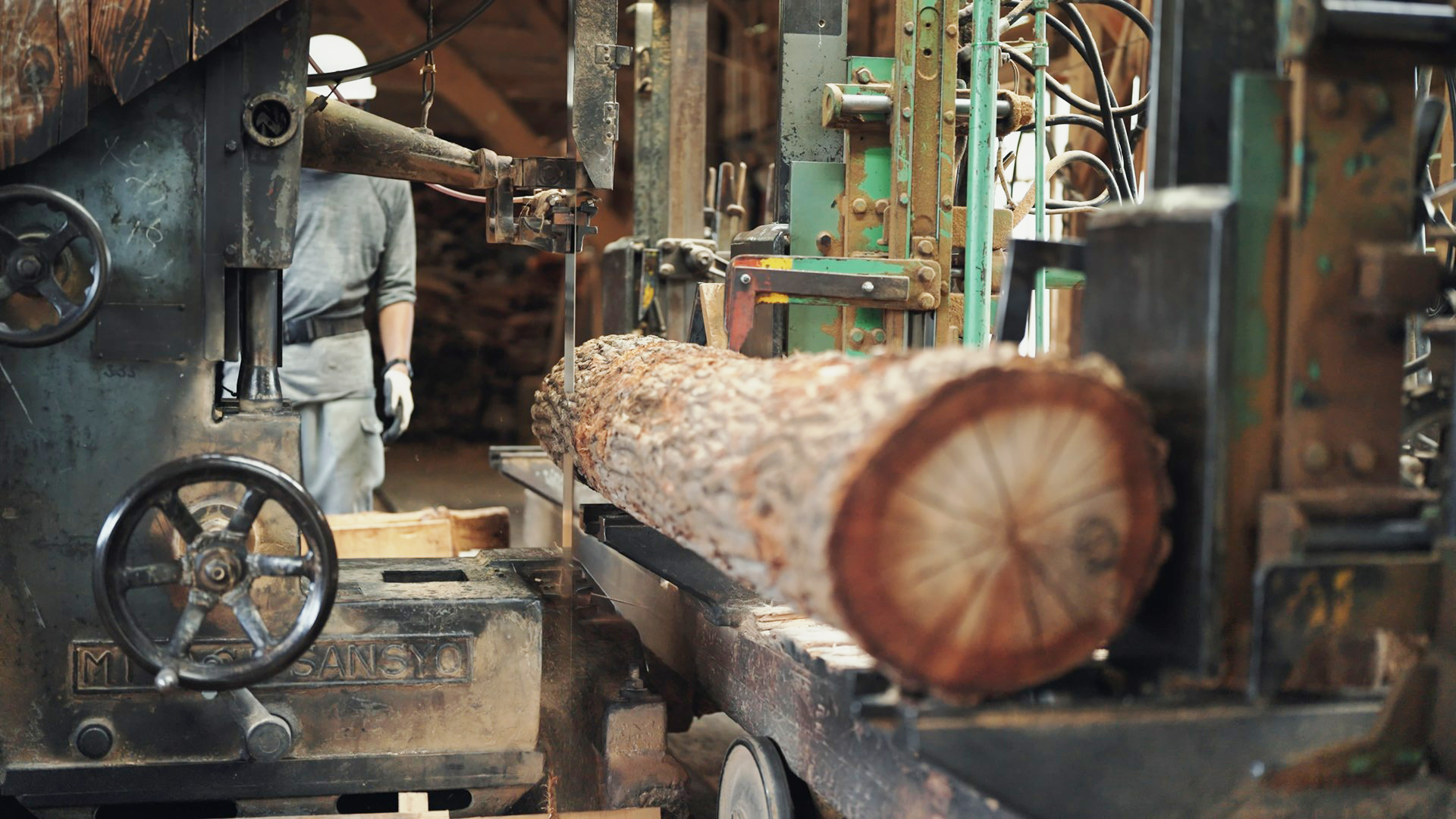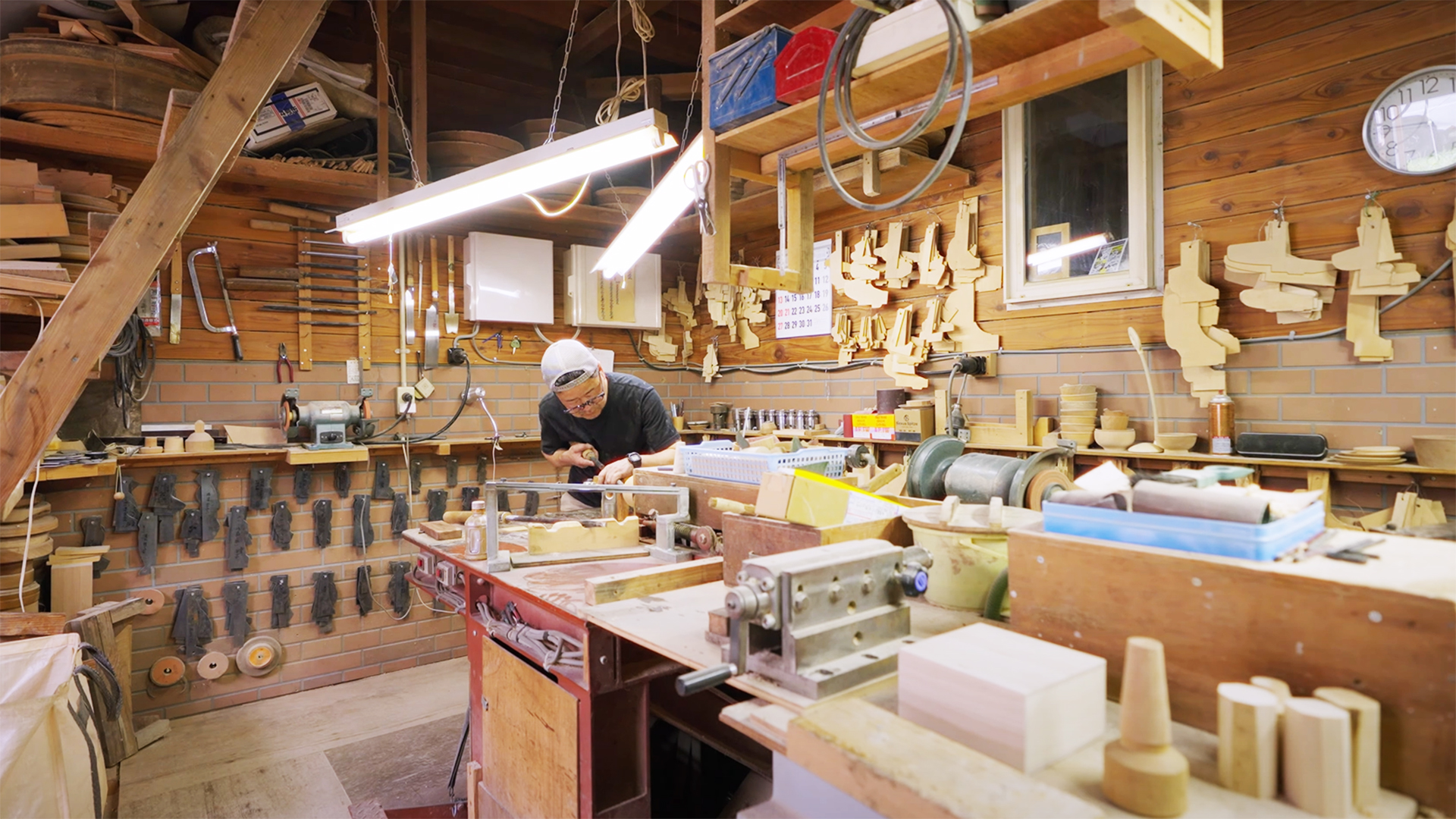 今回は、伐採を行なっている登米森林組合にて製材や人工的な乾燥工程を経て、岩手県九戸郡の木地職人が木工ろくろによる手加工で一つ一つ製作しています。