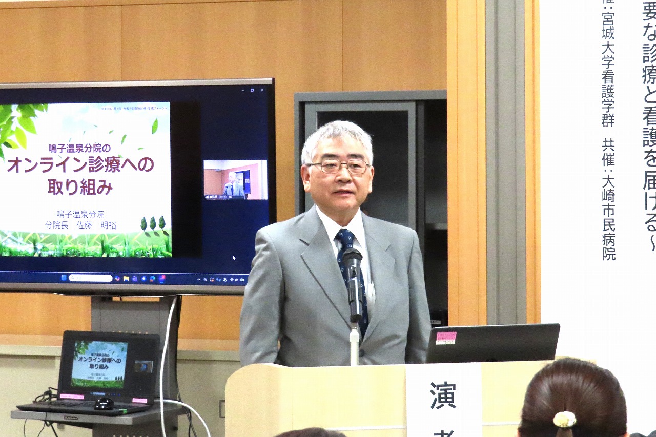 大崎市民病院の神波力也院長の閉会の挨拶では、鳴子温泉分院での実践を「鳴子モデル」として発信しつつ、今後も宮城県・全国の遠隔医療・看護の普及・啓発に向けて、仙台市医師会、大崎市民病院、宮城大学で協働しながら取り組んでいくことが共有されました。