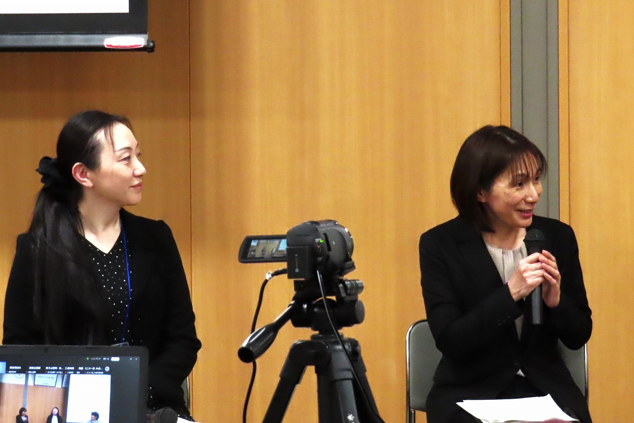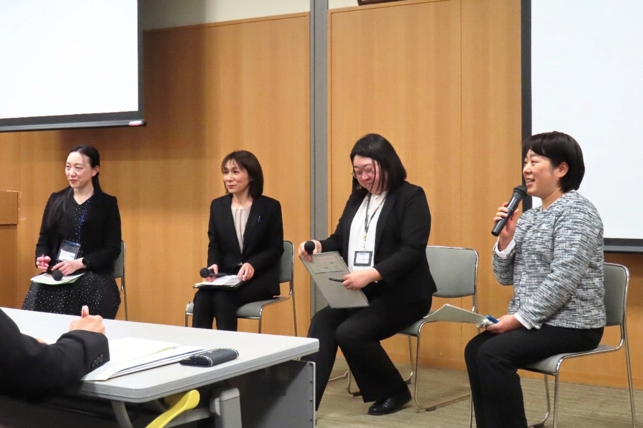 座談会では、本学の金子さゆり教授より「みやぎテレナース育成プログラム」の取り組みと効果について紹介した後、令和7年度育成プログラムの修了生である大崎市民病院の千葉美登里看護師長と大場裕子看護師長に登壇いただきました。本学の齊藤奈緒教授の進行のもと、プログラムの受講動機や大変だったこと、受講生同士の学び合いについて語り合いました。