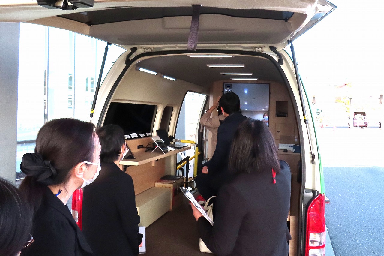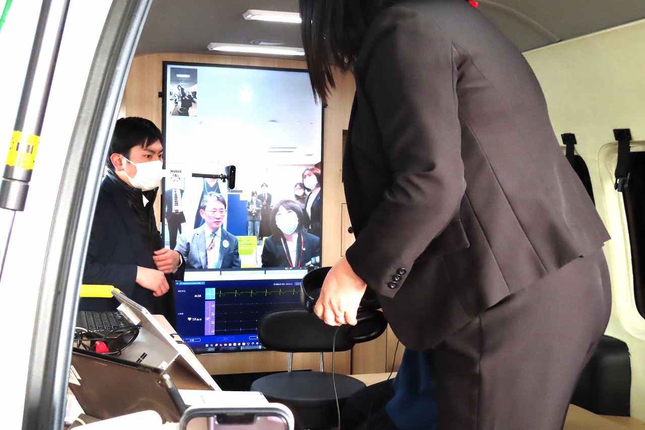会場にお越しいただいた方々は通信機器と医療機器を載せた「診療カー」や、リアルタイム遠隔医療システム「Teladoc HEALTH」のデモンストレーションを体験されました。参加された方々はモニターや呼吸音の鮮明さ、タイムラグのないコミュニケーションなどに感動されている様子でした。