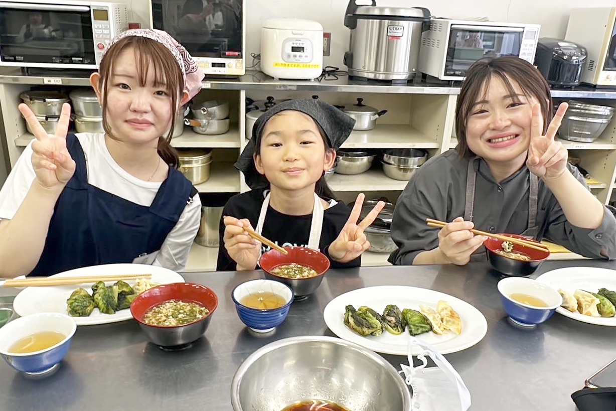 今回の「新グルメ」の開発では、産官学連携による地域課題の解決と地域活性化の取り組みとして、町内で生産される農林産物から、行者菜、まいたけ、そば、シャインマスカットなどを活用した、メニューを考案しました。宮城大学からは、食産業学群に所属する、子ども料理教室の開催などを通じて料理の楽しさを伝える「Partager(パルタジェ)」、餅の魅力を広め、地域の食文化としての可能性を探る「おもちサークル」、学生ならではの視点や感性を生かして宮城県産食材の魅力をPRする「みやぎ食の応援団」の3つのサークルが参加しています。