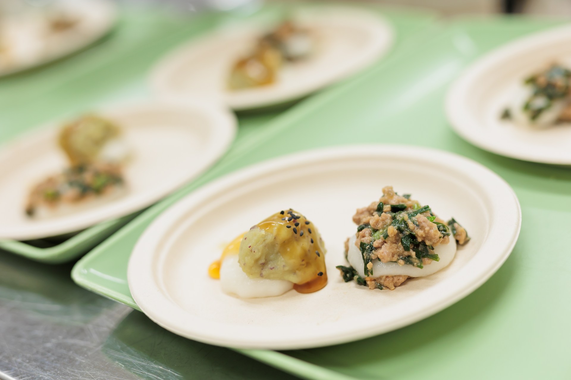 | おもちサークル | 笠原餅店 | サツマイモ、行者菜、もち米 | 「大学芋風みたらしいも」 「行者菜肉味噌もち」 |