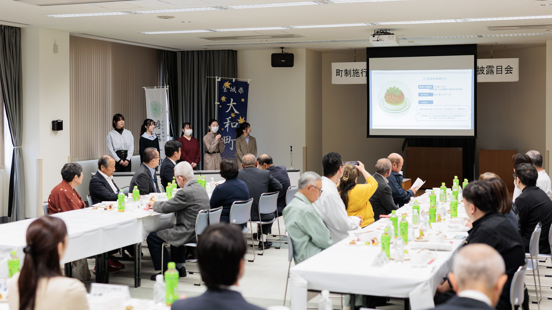 大和町は宮城県のほぼ中央に位置し、町のシンボル七ツ森や船形山そして吉田川に代表される恵まれた自然と古(いにしえ)からの歴史と文化の豊かな町です。「七ツ森の輝く緑 元気なくらしが広がる 大和町 ~しあわせめぐるまち たいわ~」を将来像とした第五次総合計画を策定し、幸せを実感しながらいきいきと暮らすことができ、元気とにぎわいが町全体にあふれていくまちづくりを進めています。2025年に町制施行70周年を迎えるにあたり、学生ならではの新たな発想を取り入れ、町内産の農林水産物を使用した「新グルメ開発事業」を実施しています。本事業は、学生と地域の生産者、飲食店などの関係者との協働を通じて、地域の魅力向上や6次産業化の促進、農家の意識改革につなげることを目的としています。