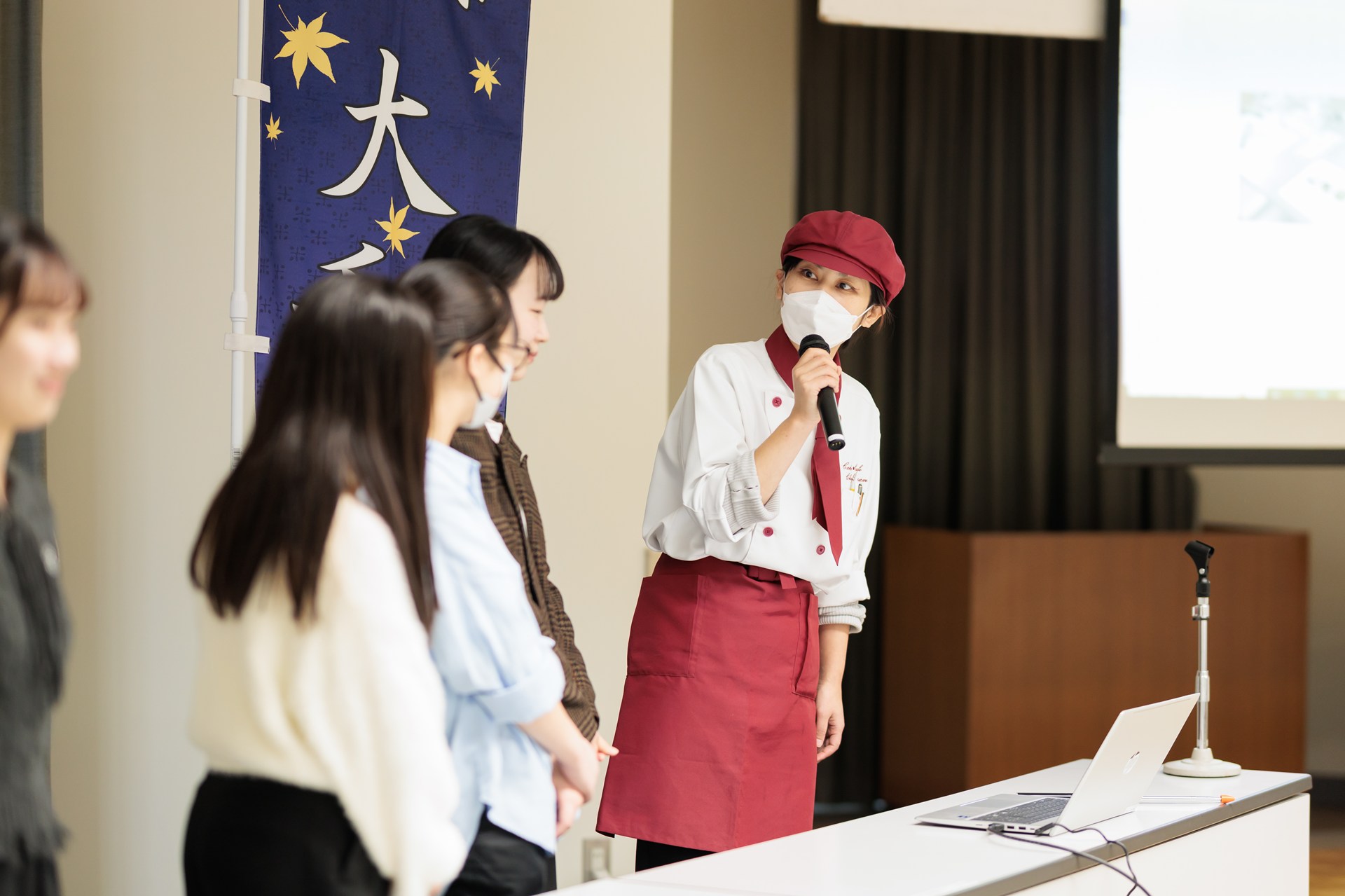 宮城大学では大和町との連携協定にもとづく取り組みの一環として、町内の飲食店とともに新メニューの共同開発に取り組んでいます。研究推進・地域未来共創センターのコーディネートと食産業学群西川特任教授の指導のもと、本学食産業学群の3つのサークルが大和町の飲食店4店舗:中華料理「供味(ともみ)」・「笠原餅店」・「パティスリーシュシュ」・「ケーキ・カフェ シェフドリーム」と新たなメニューを開発しました。10月19日に完成した新メニューのお披露目を大和町まほろばホールにて行いましたのでお知らせします。また、今回お披露目したメニューは、11月2日に開催されるたいわ産業まつりでもお楽しみいただけますので合わせてご案内いたします。